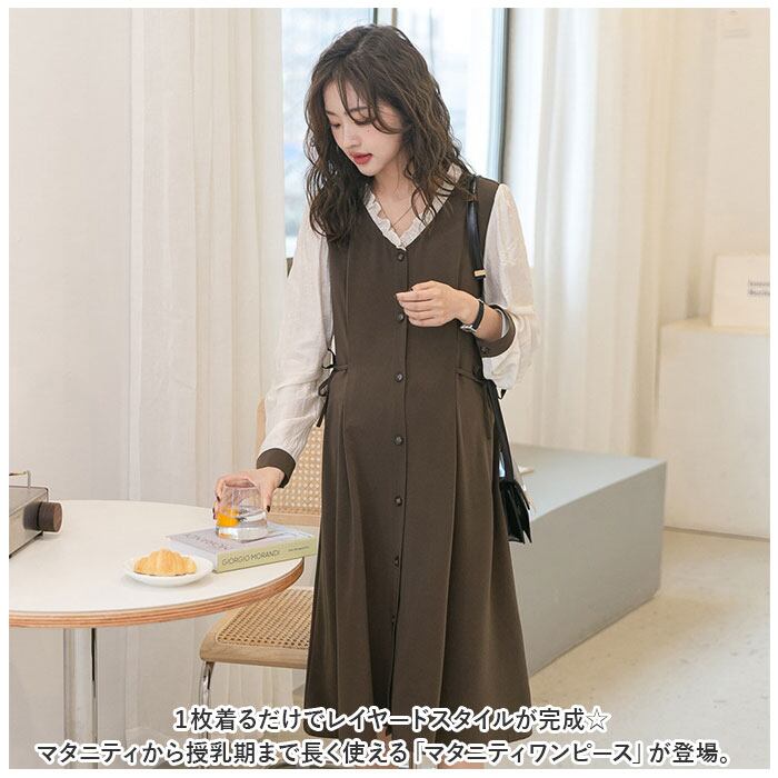 ・1枚着るだけでレイヤードスタイルが完成☆マタニティから授乳期まで長く使える「マタニティワンピース」が登場。