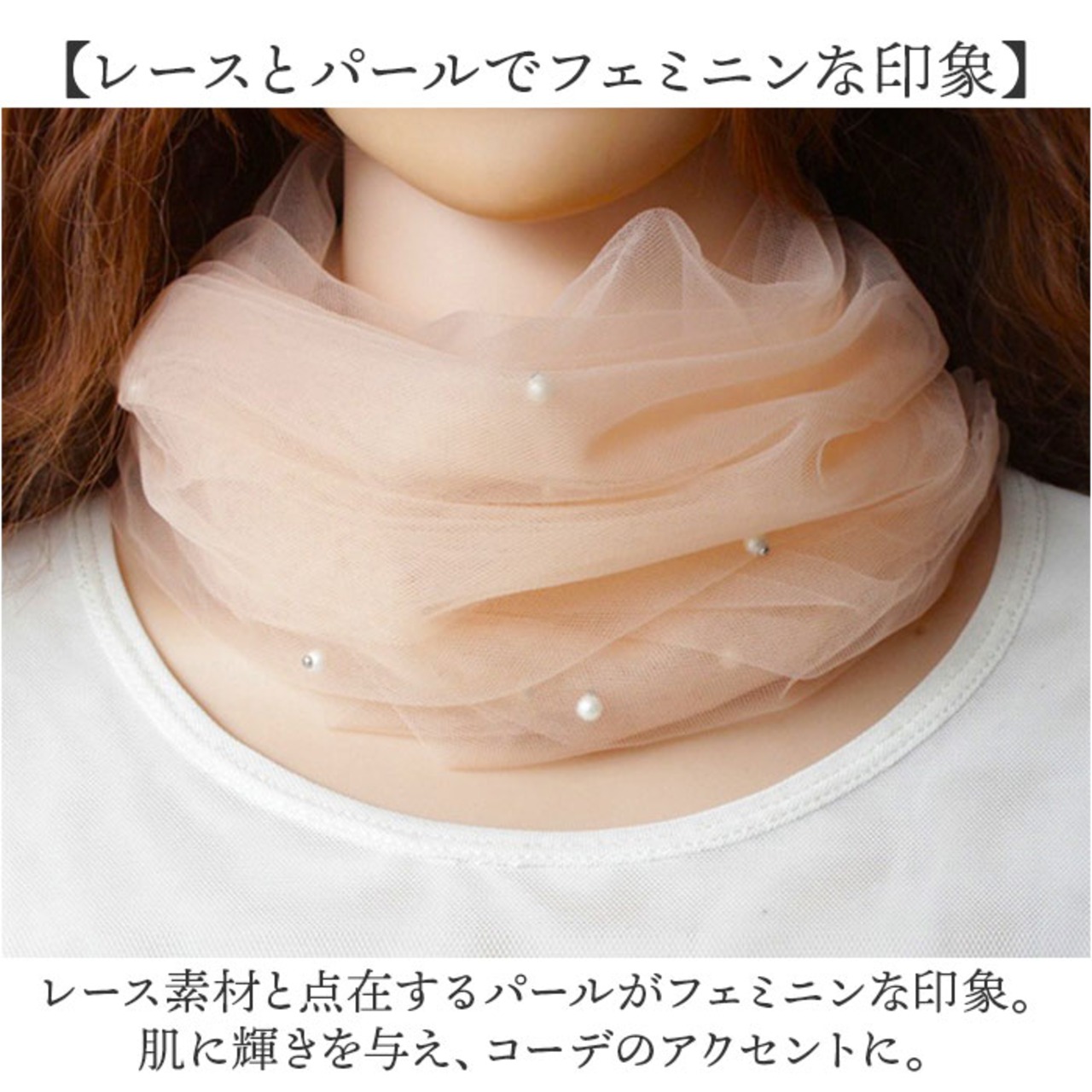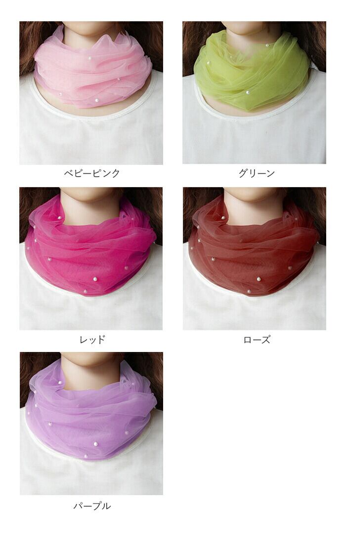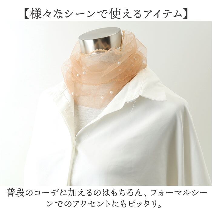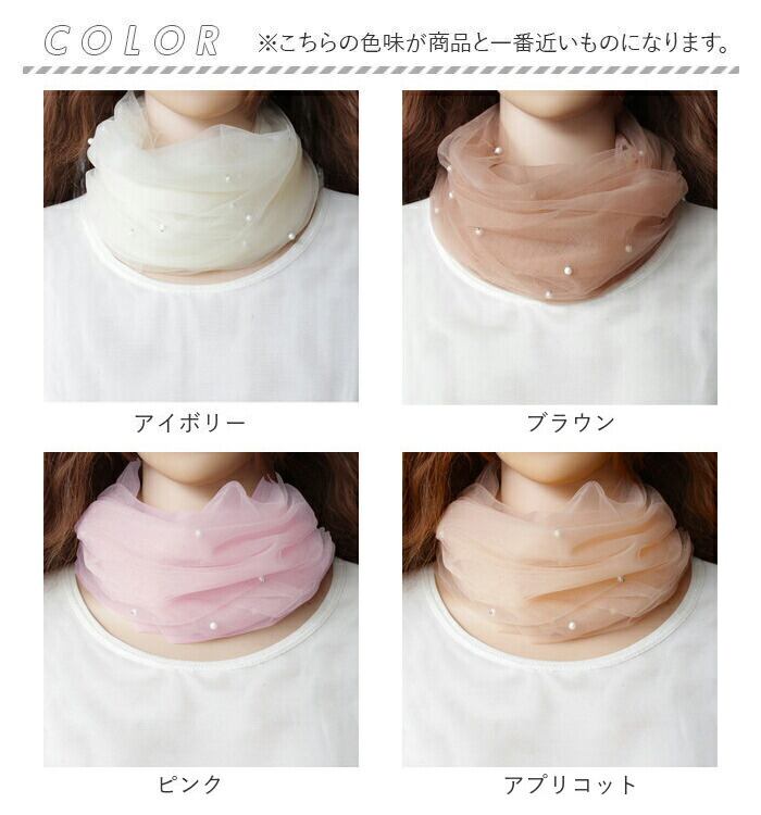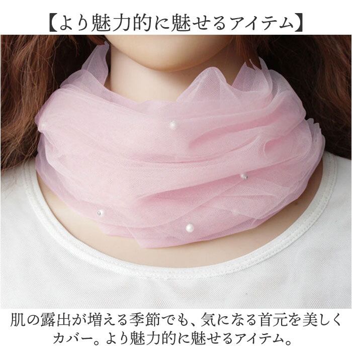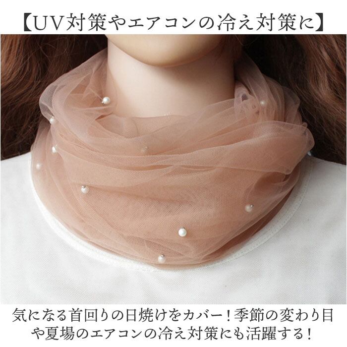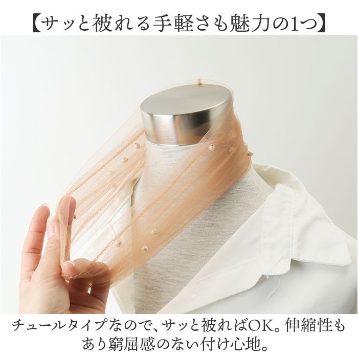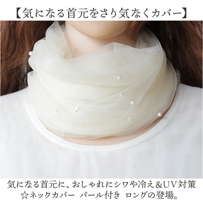 ・気になる首元に、おしゃれにシワや冷え&UV対策☆ネックカバー パール付き ロングの登場。