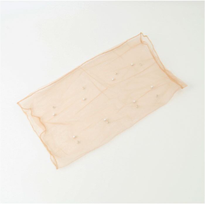 ・チュールタイプなので、サッと被ればOK。伸縮性もあり窮屈感のない付け心地。
