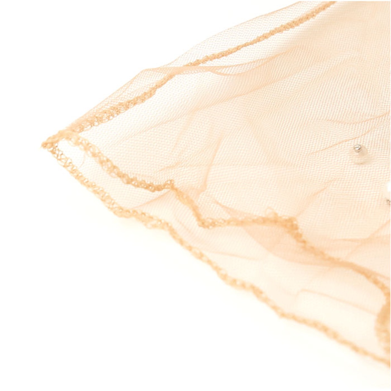 ・レース素材と点在するパールがフェミニンな印象。肌に輝きを与え、コーデのアクセントに。