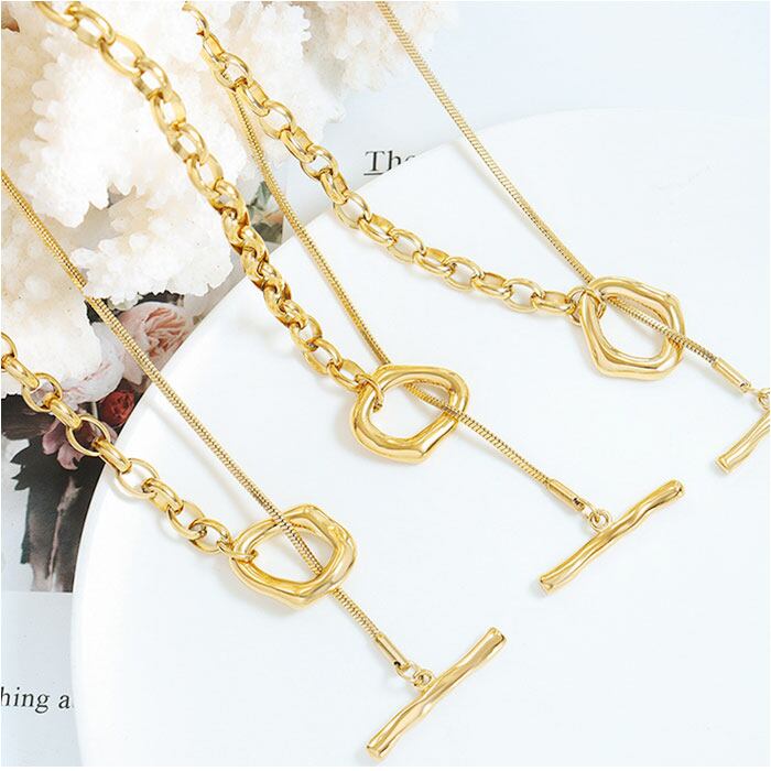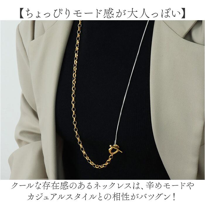 ・スネーク、ニュアンスモチーフ、粗チェーンといろいろな表情を魅せる。短くして2重つけも◎