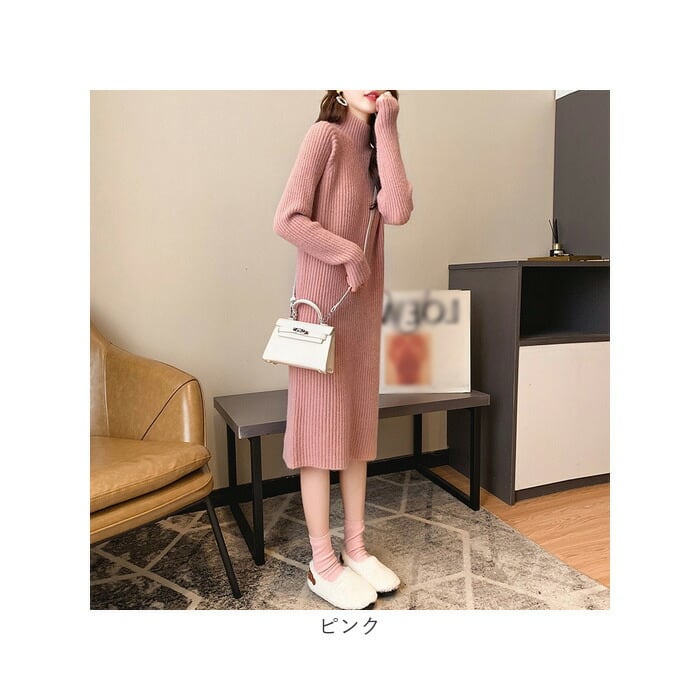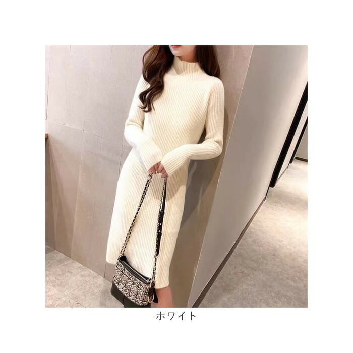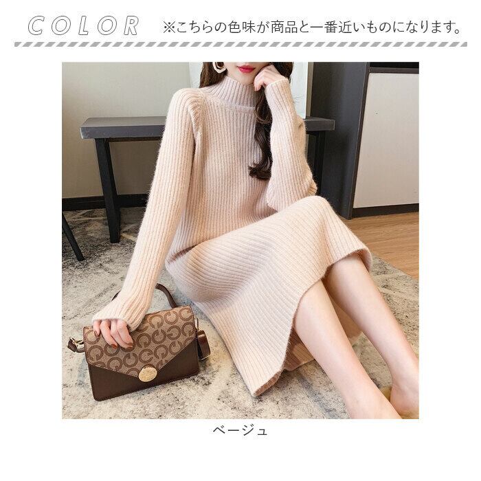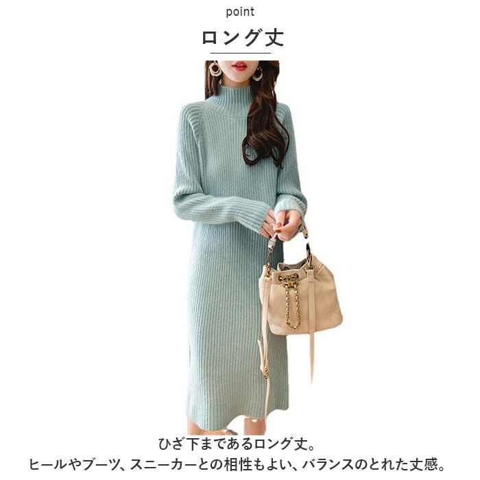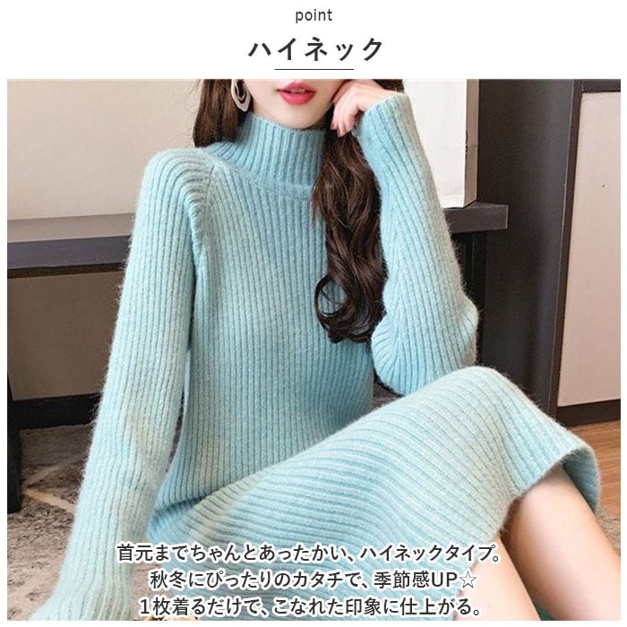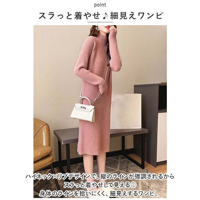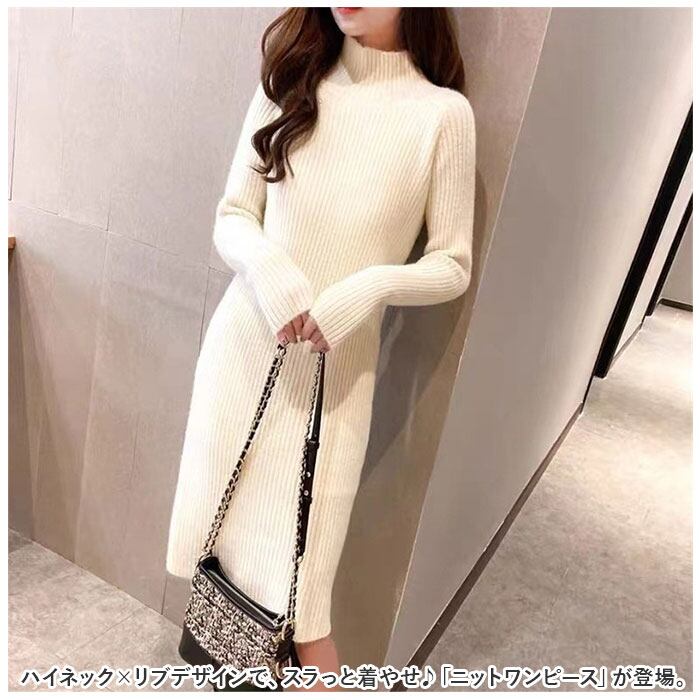 ニットワンピース ハイネック 通販 ワンピース ニット ワンピ リブワンピ ロング 長袖 レディース 秋 冬 シンプル 無地 あたたかい 通勤 通学 カジュアル 外出 お出かけ きれいめ かわいい カワイイ おしゃれ オシャレ