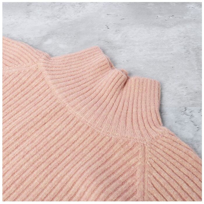 ・ハイネック×リブデザインで、縦のラインが強調されるからスラっと着やせして見える◎身体のラインを拾いにくく、細見えするワンピ。