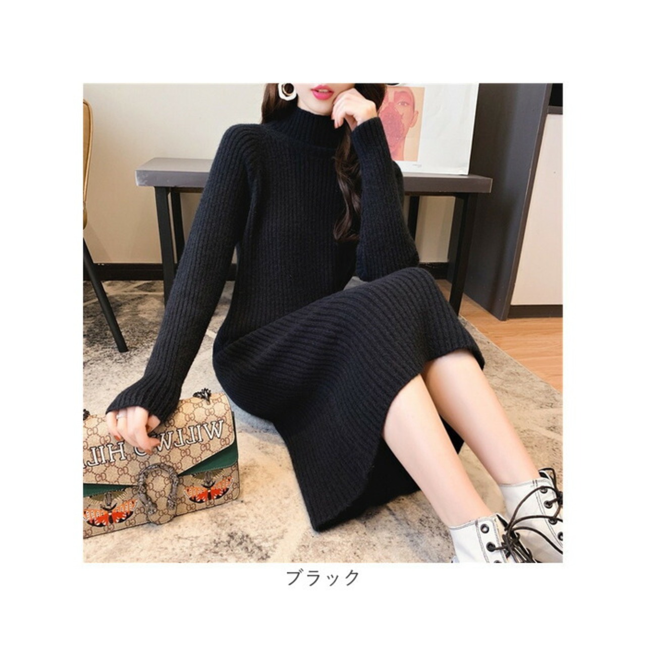 ・ハイネック×リブデザインで、スラっと着やせ♪「ニットワンピース」が登場。