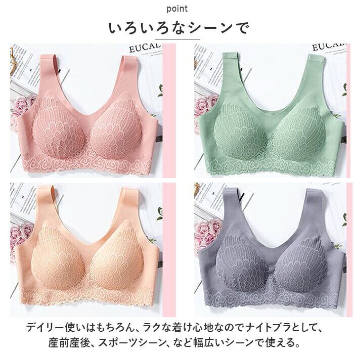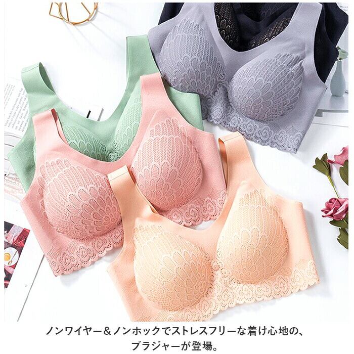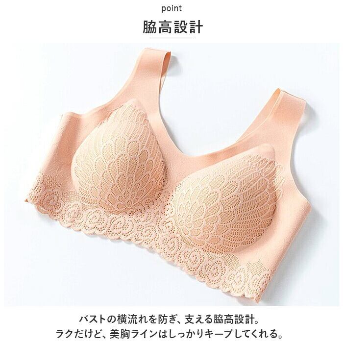 ブラジャー 通販 ナイトブラ ノンワイヤーブラ スポーツブラ スポブラ インナー 下着 肌着 ランジェリー 通気性 シームレス 軽量 柔らかい レース 脇高 パッド付 U字バック 産前 産後 ノンホック 楽 ノンストレス レディース