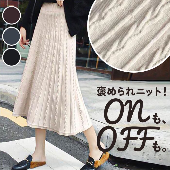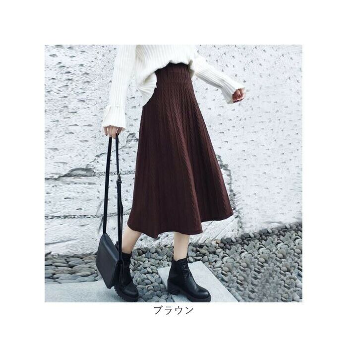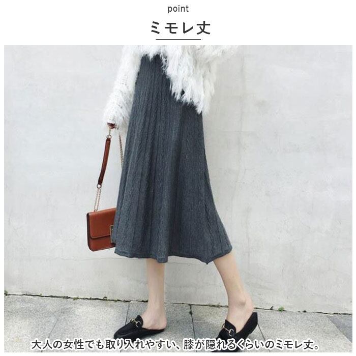 ミモレスカート 柄 スカート 通販 ニットスカート ニット ミモレ ミモレ丈 ハイウエスト Aライン きれいめ プリーツ おしゃれ ロング 上品 レディース 春 秋 冬