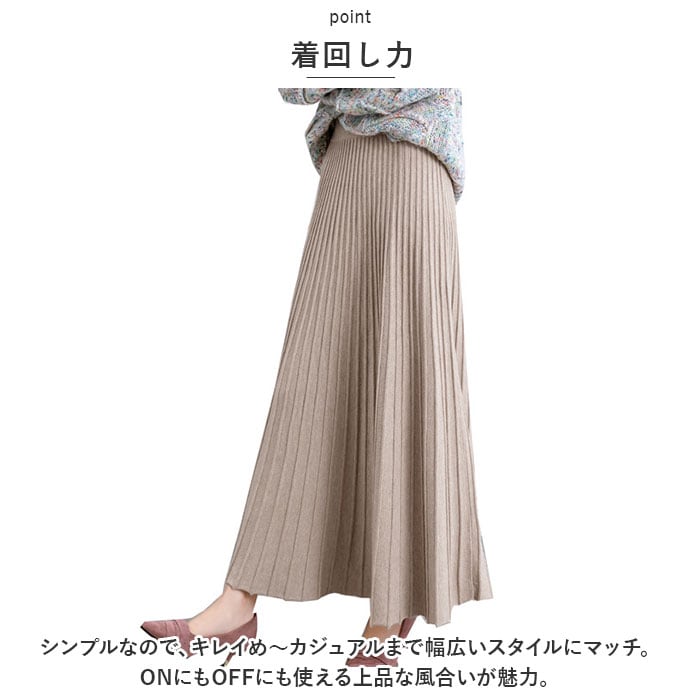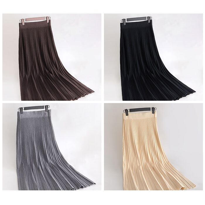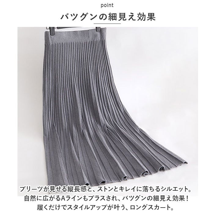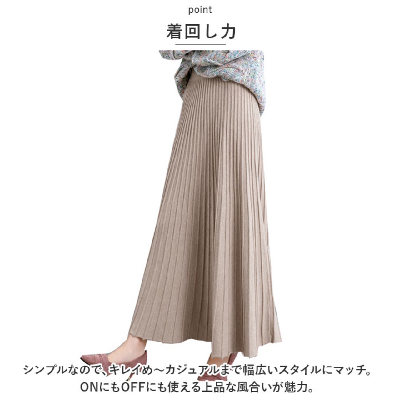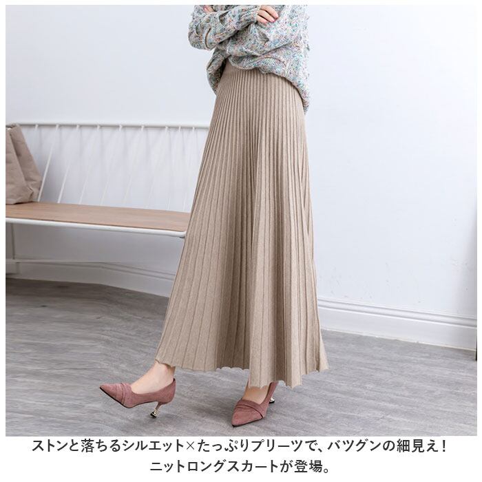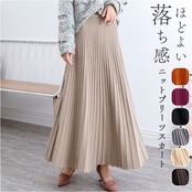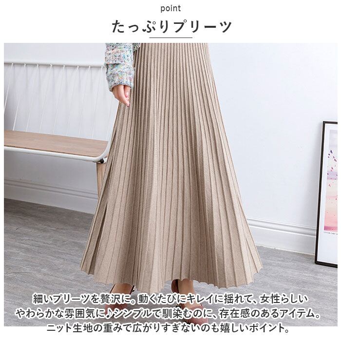 ロングスカート ニット 通販 ニットスカート プリーツ スカート マキシスカート ボトムス レディース 秋 冬 ウエストゴム Aライン シンプル 無地 通勤 通学 カジュアル 柔らかい あたたかい 大人 上品 おしゃれ オシャレ かわいい カワイイ