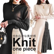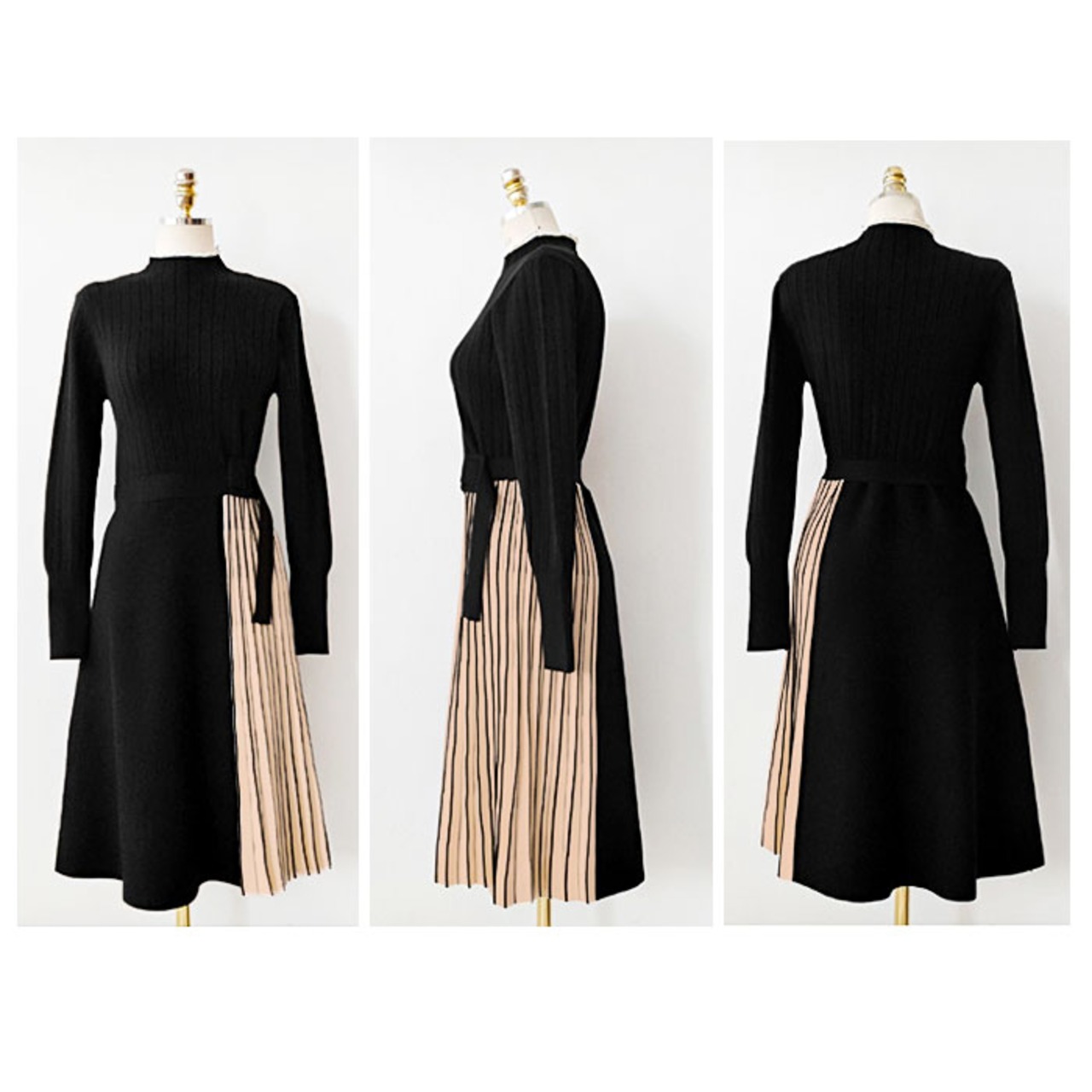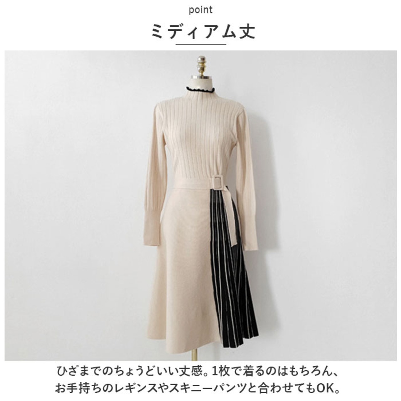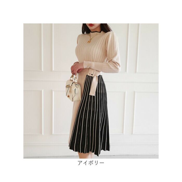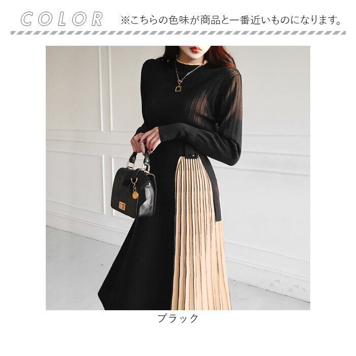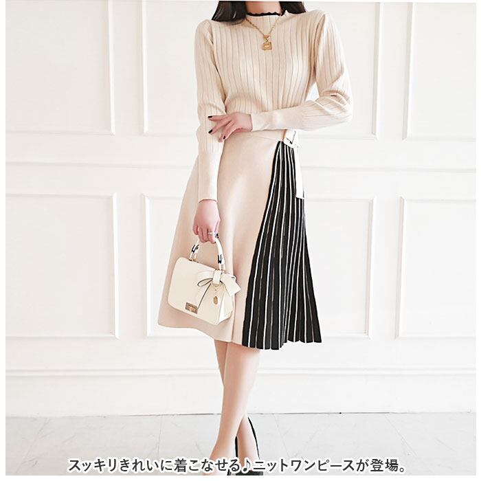 ワンピース レディース ニット 膝下 膝丈 通販 ワンピ ドレス ニットワンピース ニットワンピ セーター プリーツスカート Aライン 長袖 ラウンドネック エレガント 上品 シンプル 無地 春 秋 通勤 デザイン パーティー おしゃれ かわいい 可愛い