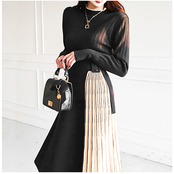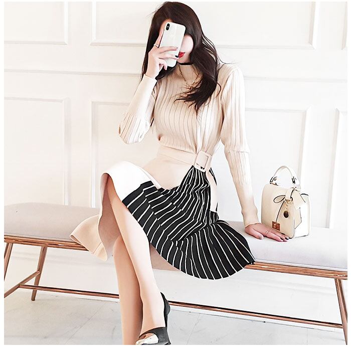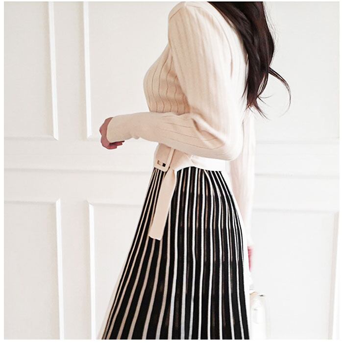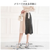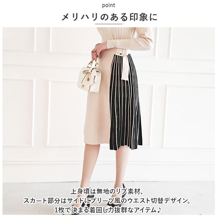 ・上身頃は無地のリブ素材、スカート部分はサイドにプリーツ風のウエスト切替デザイン。1枚で決まる着回し力抜群なアイテム♪