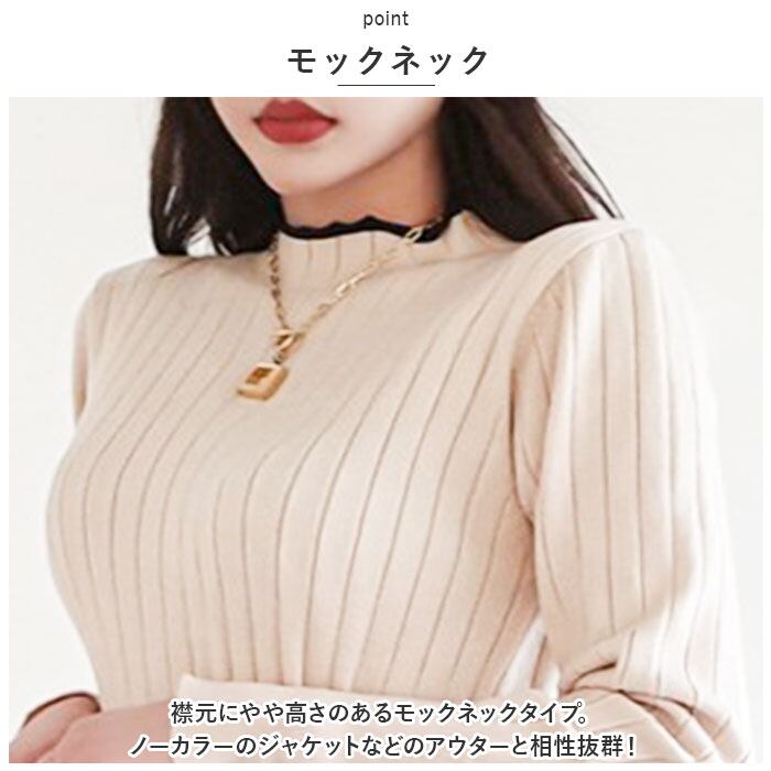 ・襟元にやや高さのあるモックネックタイプ。ノーカラーのジャケットなどのアウターと相性抜群!
