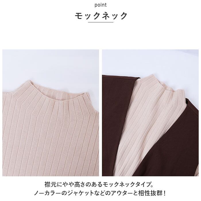・襟元にやや高さのあるモックネックタイプ。ノーカラーのジャケットなどのアウターと相性抜群!