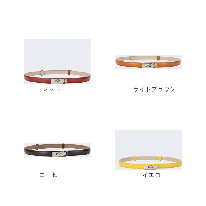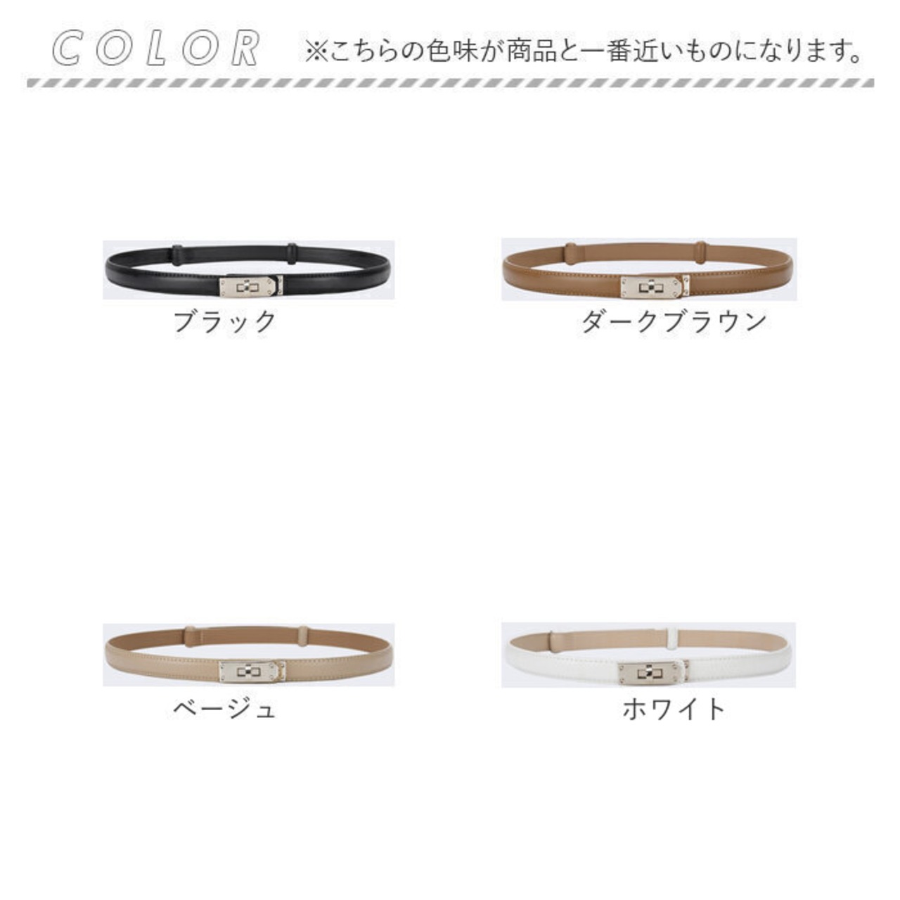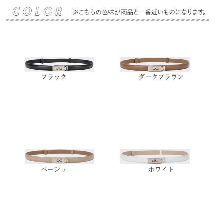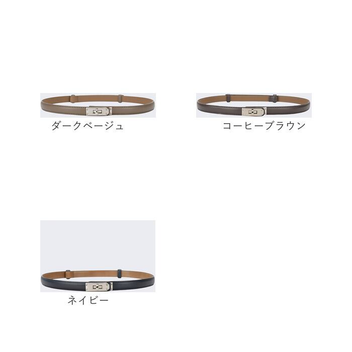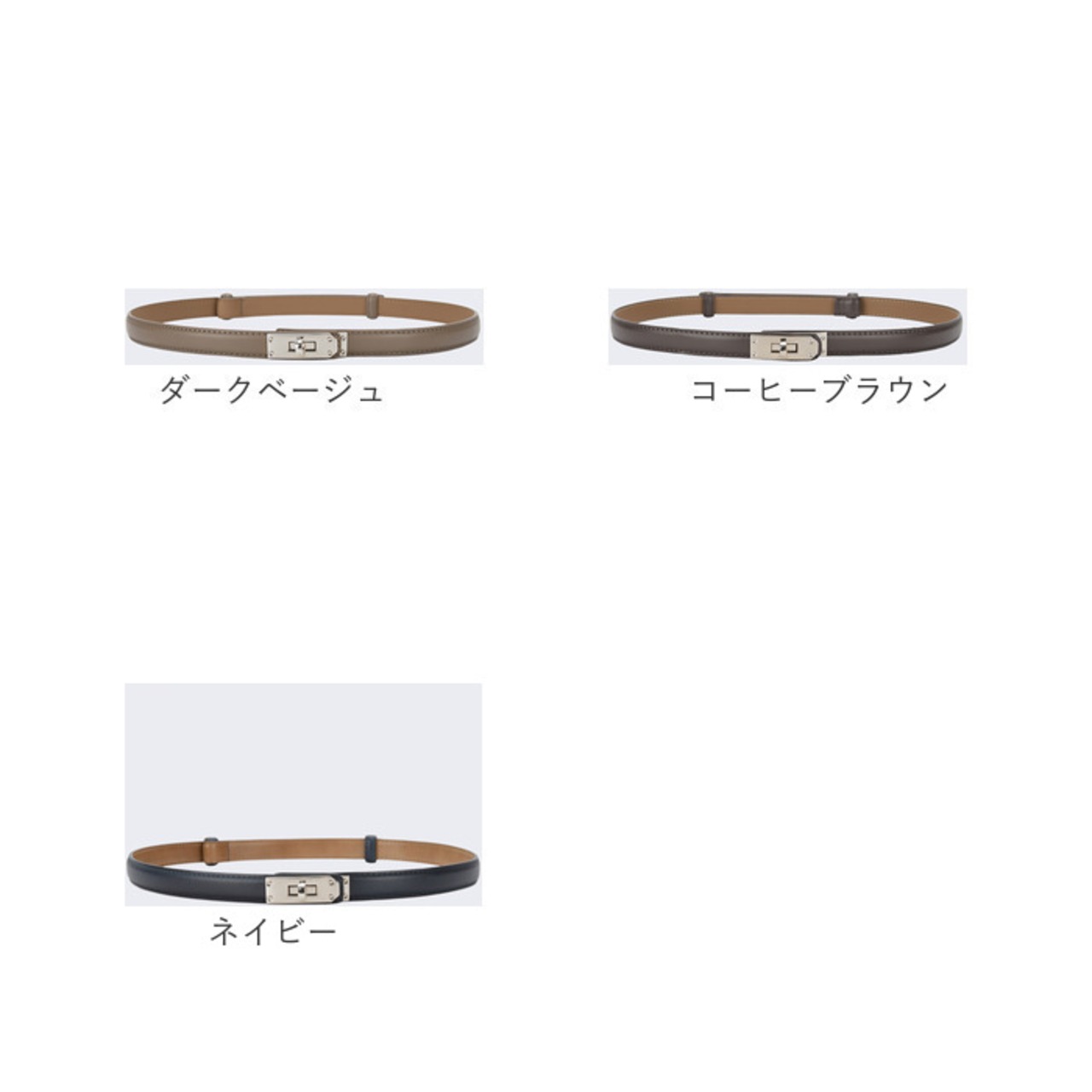 ・シルバーのバックルと細めのベルト幅が大人の上品な雰囲気を醸し出し、メリハリのあるスタイリングが楽しめる。