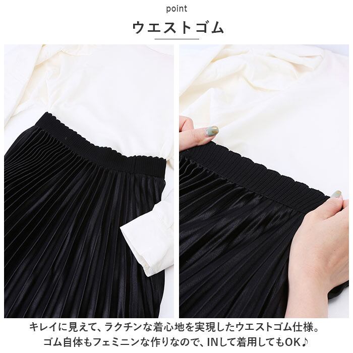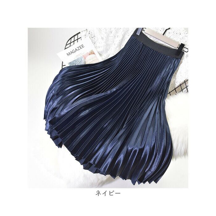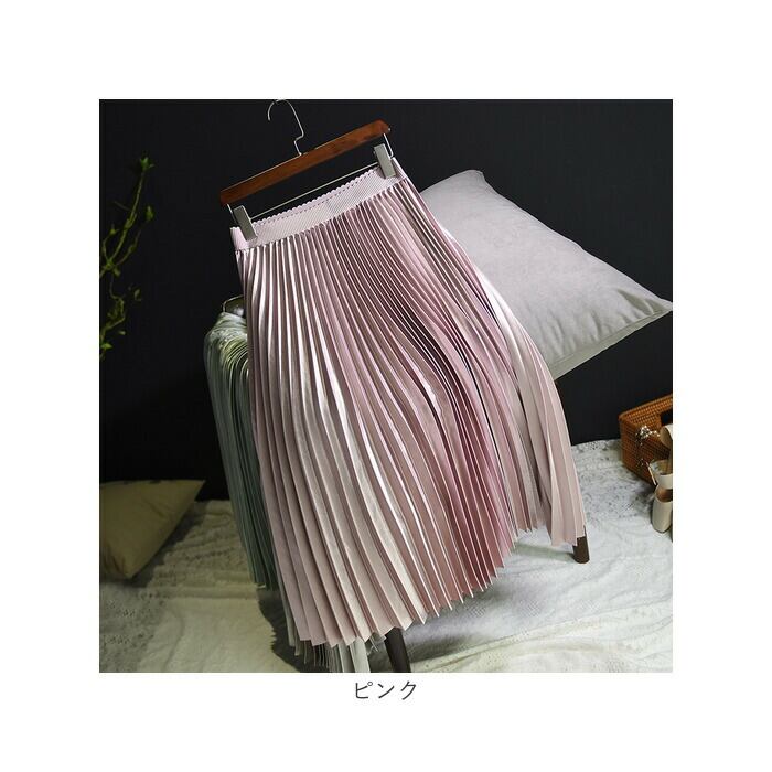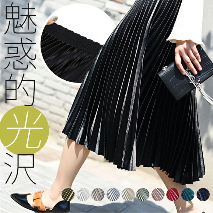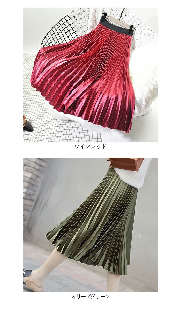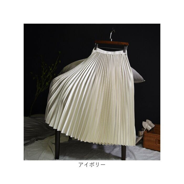・光沢のあるサテン風生地と、たっぷりプリーツがおしゃれ☆「ロングスカート」が登場。