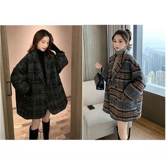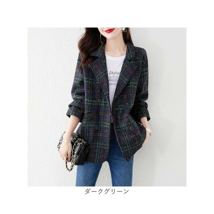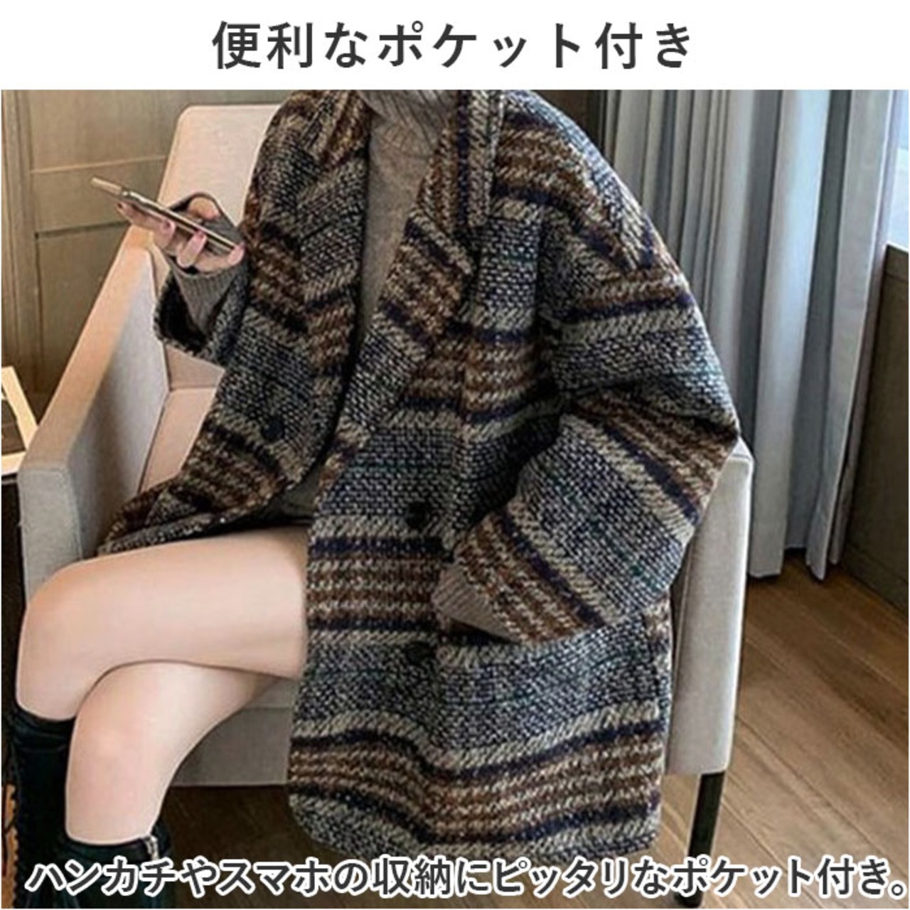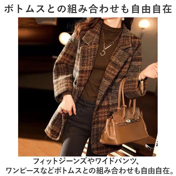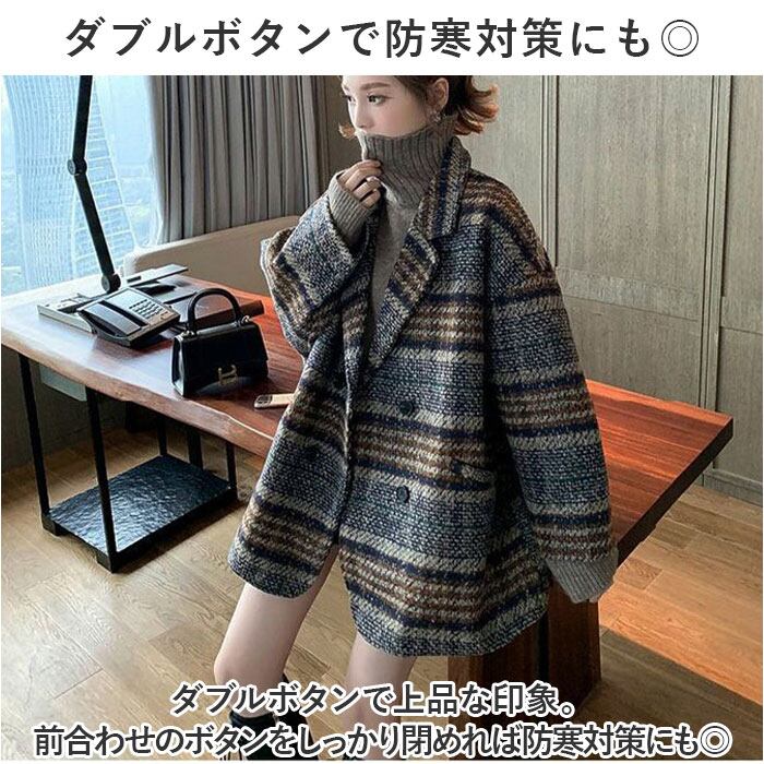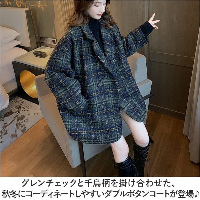 ・グレンチェックと千鳥柄を掛け合わせた、秋冬にコーディネートしやすいダブルボタンコートが登場♪