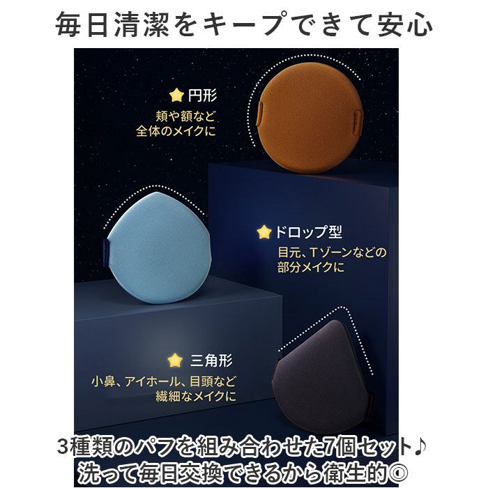 ・毎日のメイクに♪洗い替えに便利な「北斗七星パフ」7個セットが新登場。