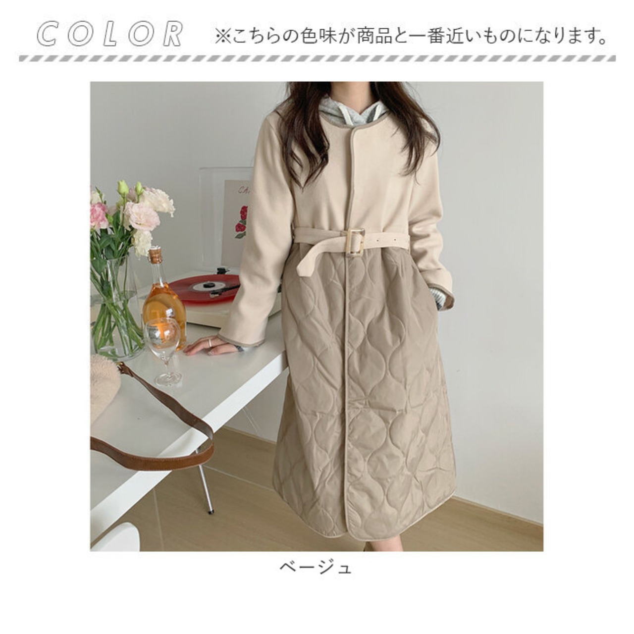 ・付属のベルトは取り外し可能。キュッと締めて上品スタイルに。外してラフな着こなしに。パッと印象が変わるのも嬉しいポイント☆