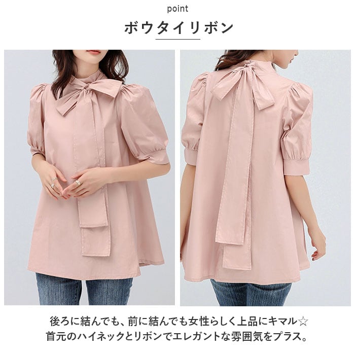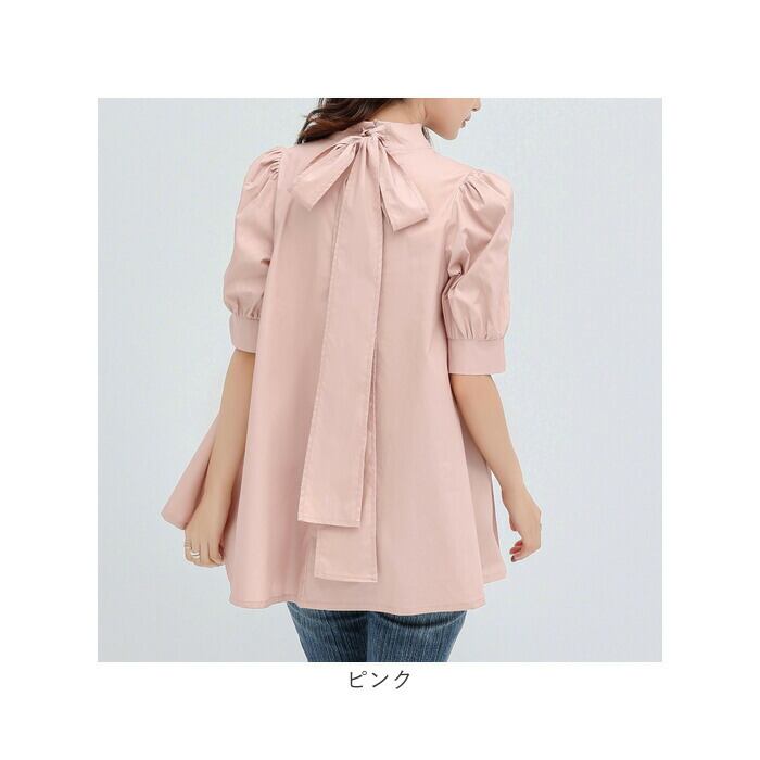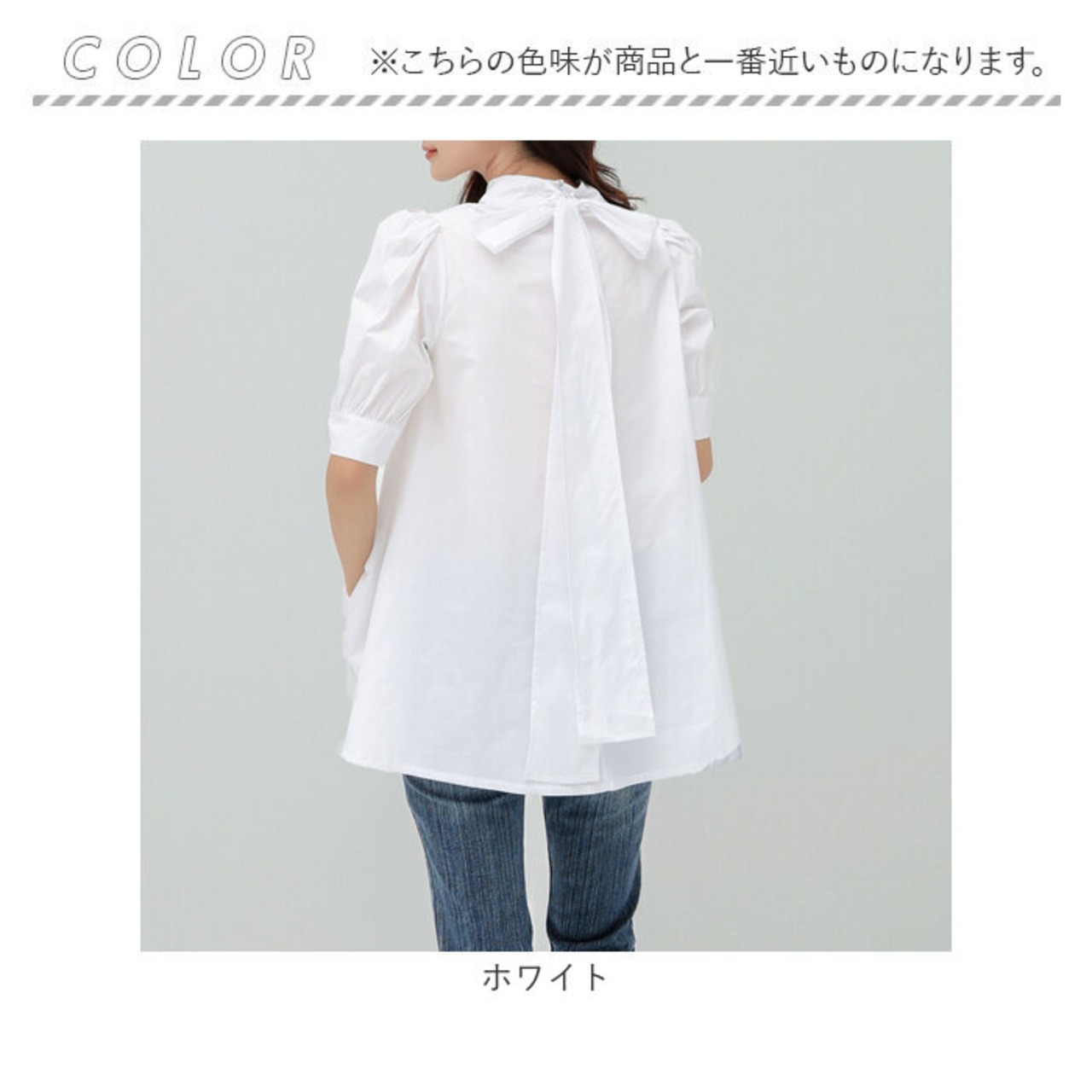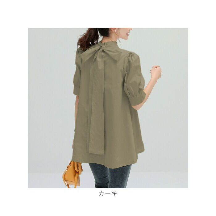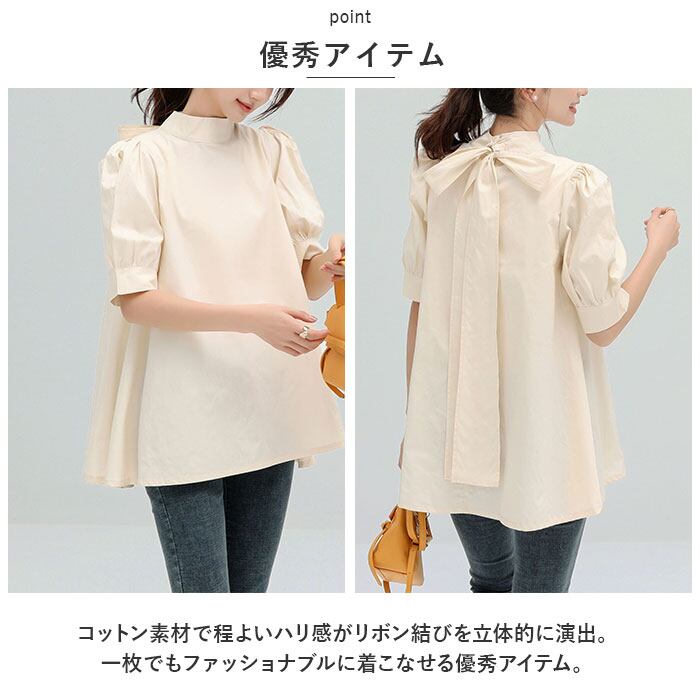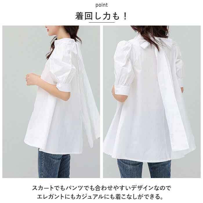 ・コットン素材で程よいハリ感がリボン結びを立体的に演出。一枚でもファッショナブルに着こなせる優秀アイテム。