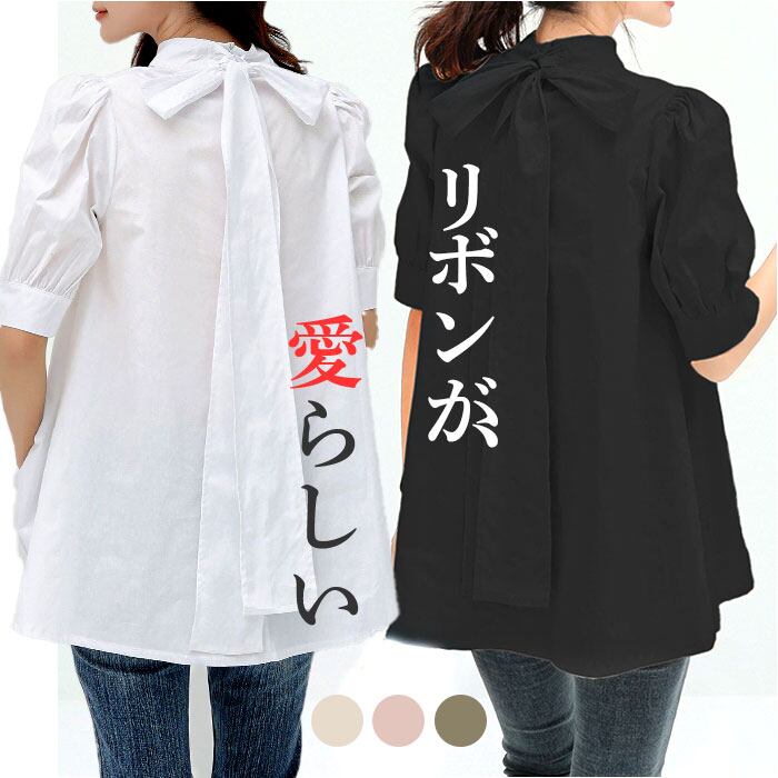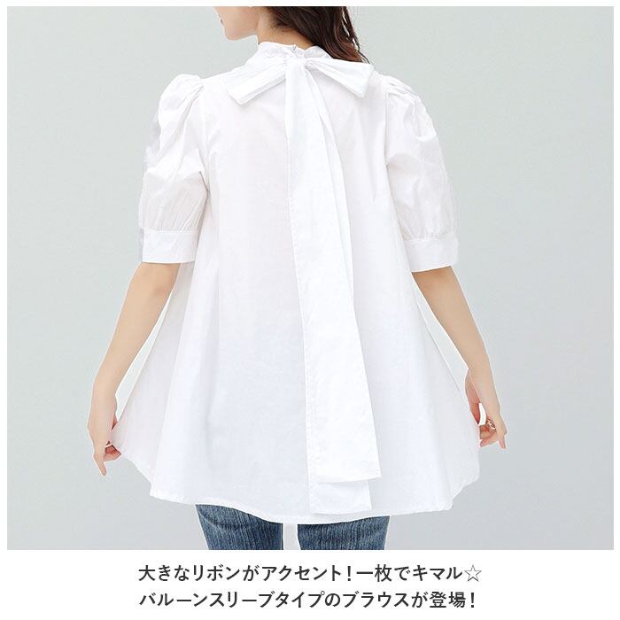 ・大きなリボンがアクセント!一枚でキマル☆バルーンスリーブタイプのブラウスが登場!