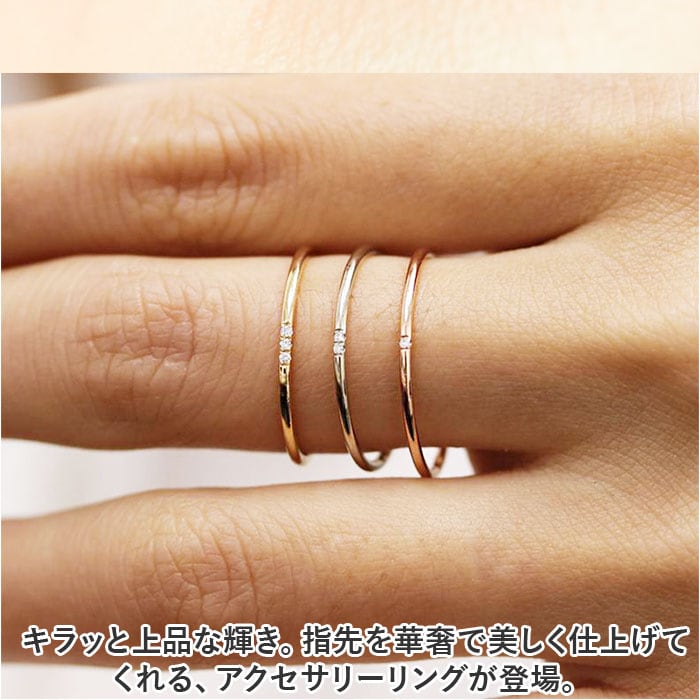 ・細めのリングにさりげなくストーンを配置。指先を華奢で美しく仕上げてくれる大人のリング。