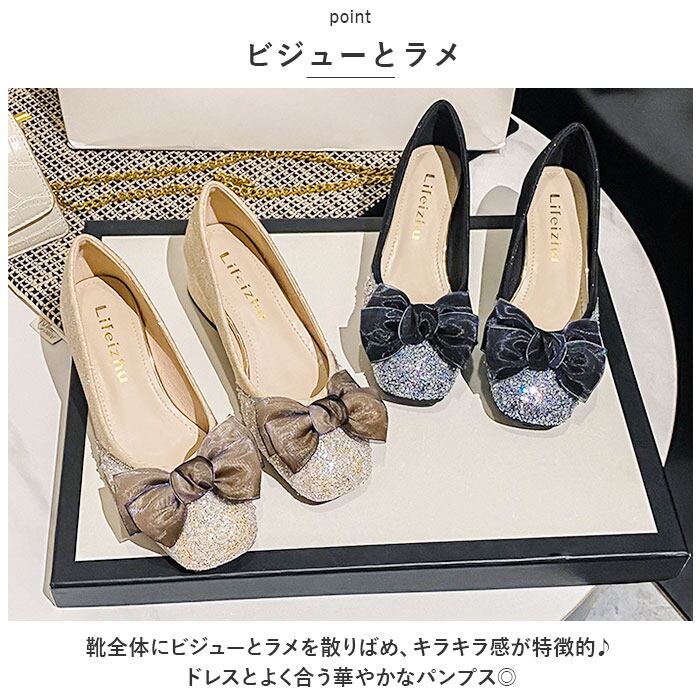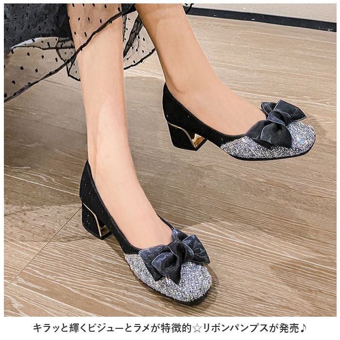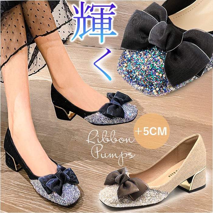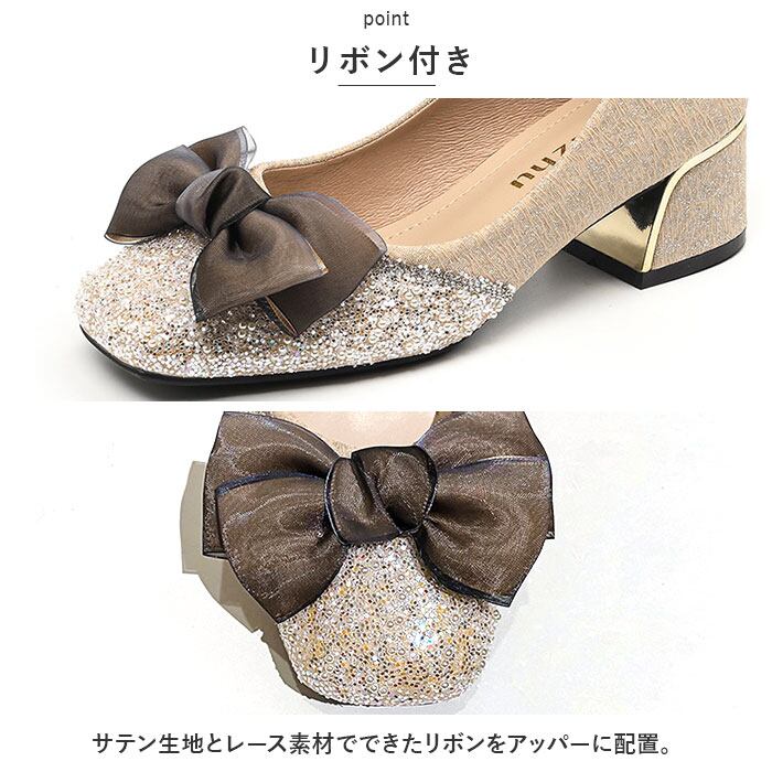 ・キラッと輝くビジューとラメが特徴的☆リボンパンプスが発売♪