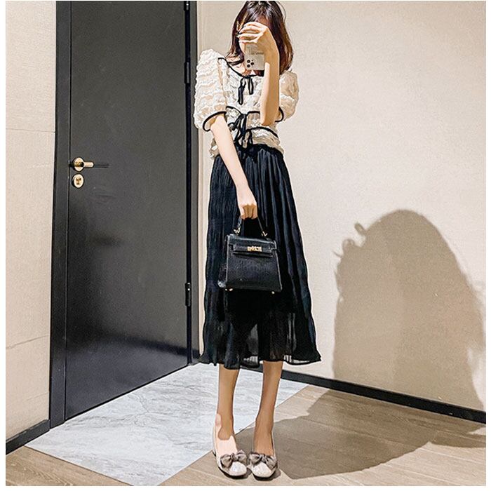 ・サテン生地とレース素材でできたリボンをアッパーに配置。