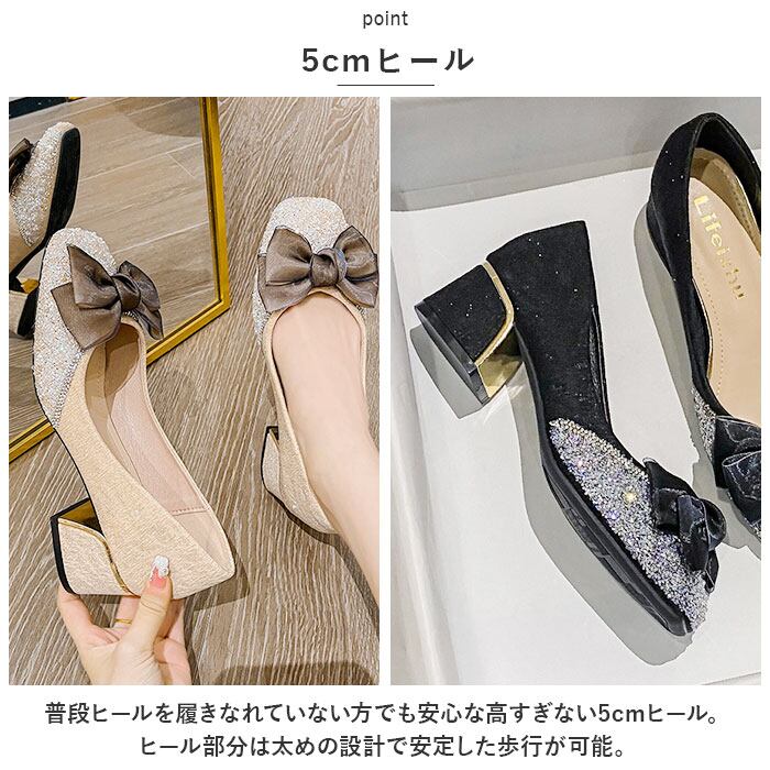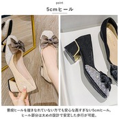 ・普段ヒールを履きなれていない方でも安心な高すぎない5cmヒール。ヒール部分は太めの設計で安定した歩行が可能。