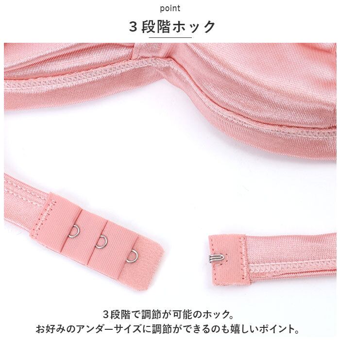 ・3段階で調節が可能のホック。お好みのアンダーサイズに調節ができるのも嬉しいポイント。