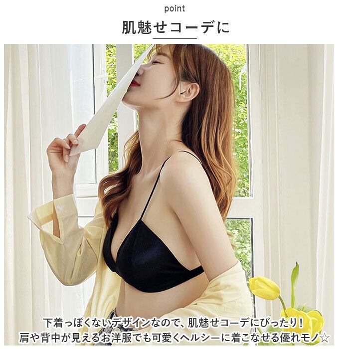 ・下着っぽくないデザインなので、肌魅せコーデにぴったり!肩や背中が見えるお洋服でも可愛くヘルシーに着こなせる優れモノ☆