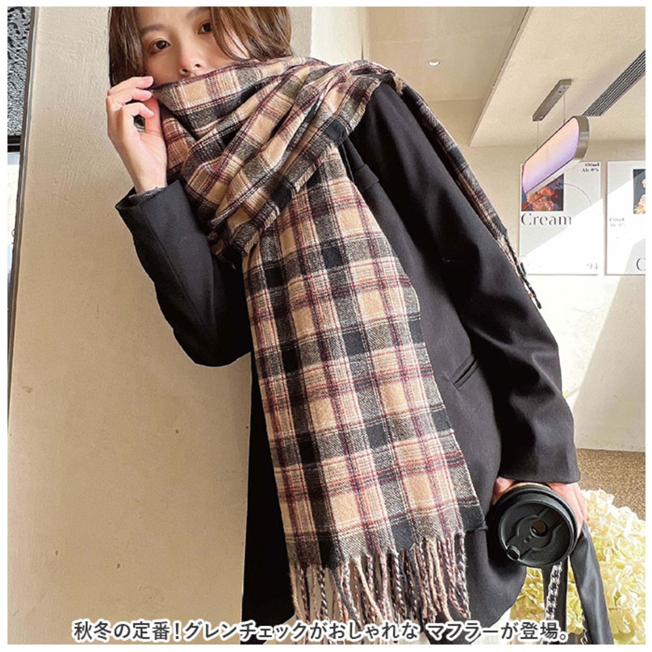 ・秋冬の定番!グレンチェックがおしゃれな マフラーが登場。