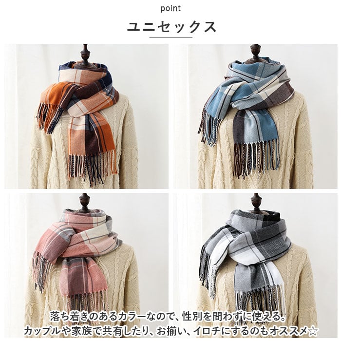 マフラー チェック柄 通販 ストール スカーフ あたたかい 暖かい レディース メンズ 男女兼用 ユニセックス チェック 柄 秋 冬 贈り物 ギフト おしゃれ