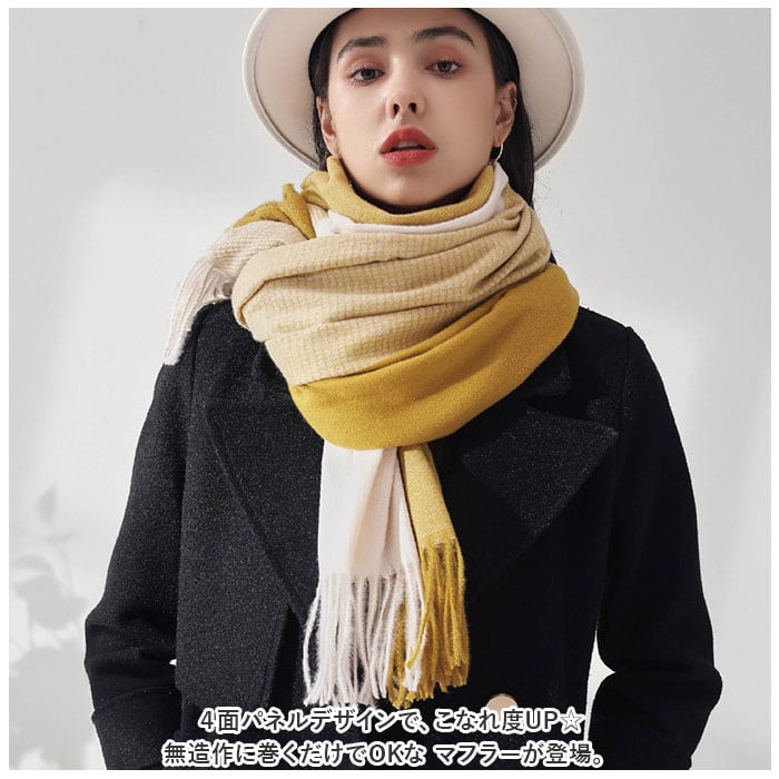 ・4面パネルデザインで、こなれ度UP☆無造作に巻くだけでOKな マフラーが登場。