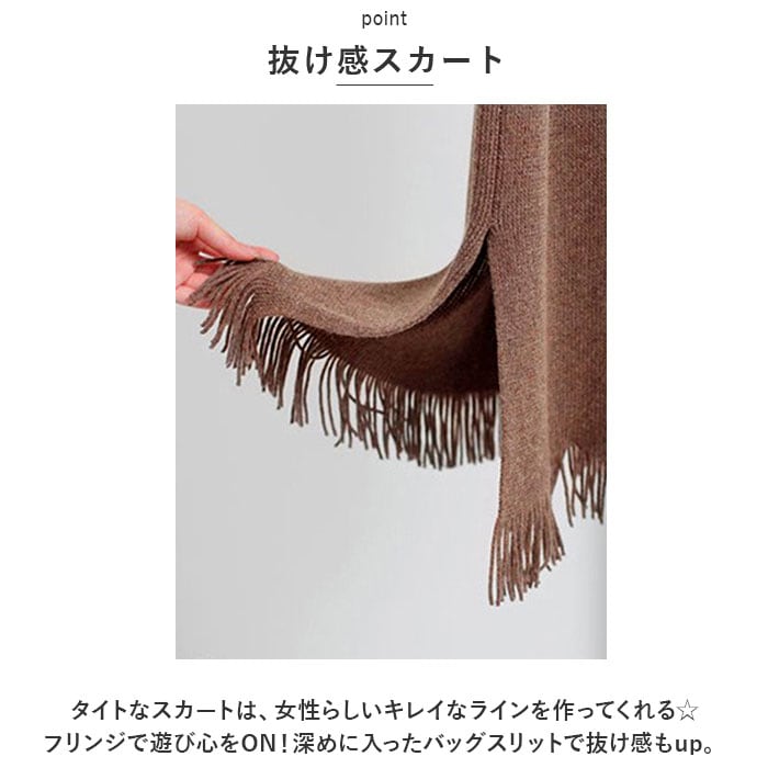・タイトなスカートは、女性らしいキレイなラインを作ってくれる☆フリンジで遊び心をON!深めに入ったバッグスリットで抜け感もup。