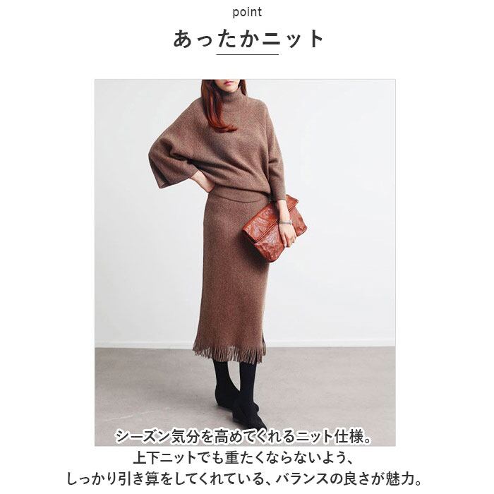 ・シーズン気分を高めてくれるニット仕様。上下ニットでも重たくならないよう、しっかり引き算をしてくれている、バランスの良さが魅力。