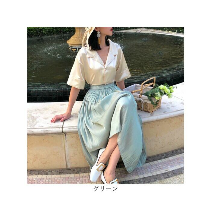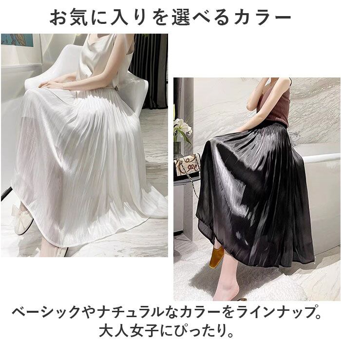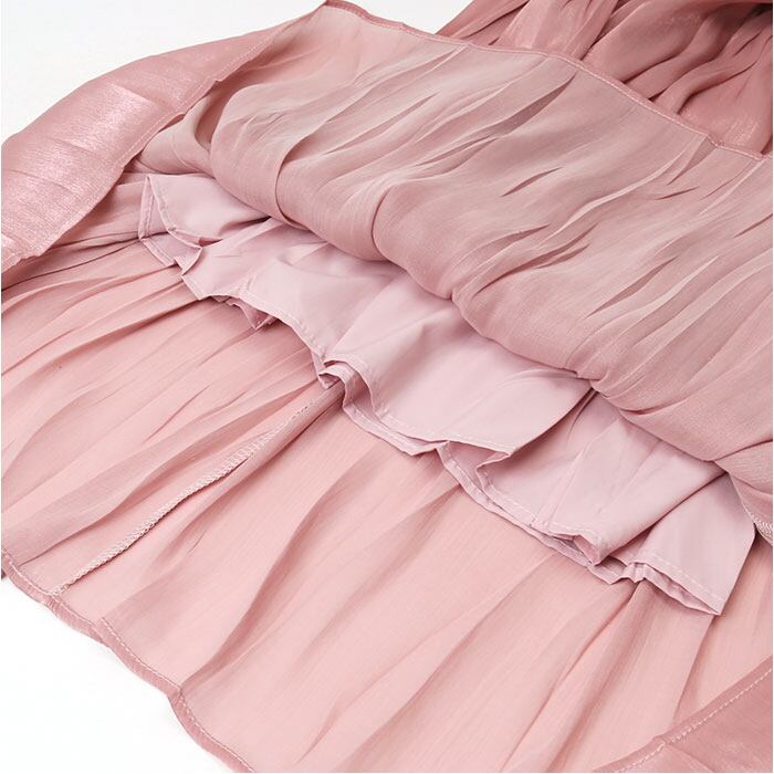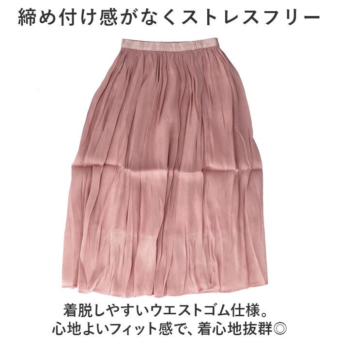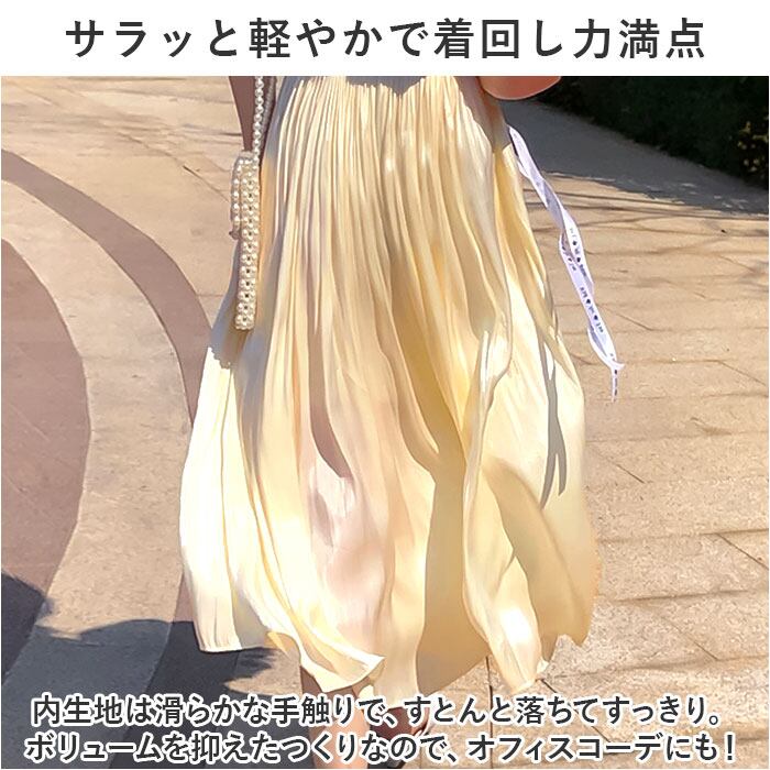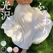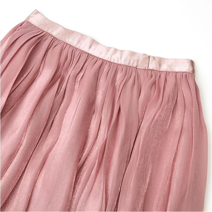 ・表面はギャザーを入れた、程よい光沢のある生地。歩くたびに揺れてコーデが華やかに♪