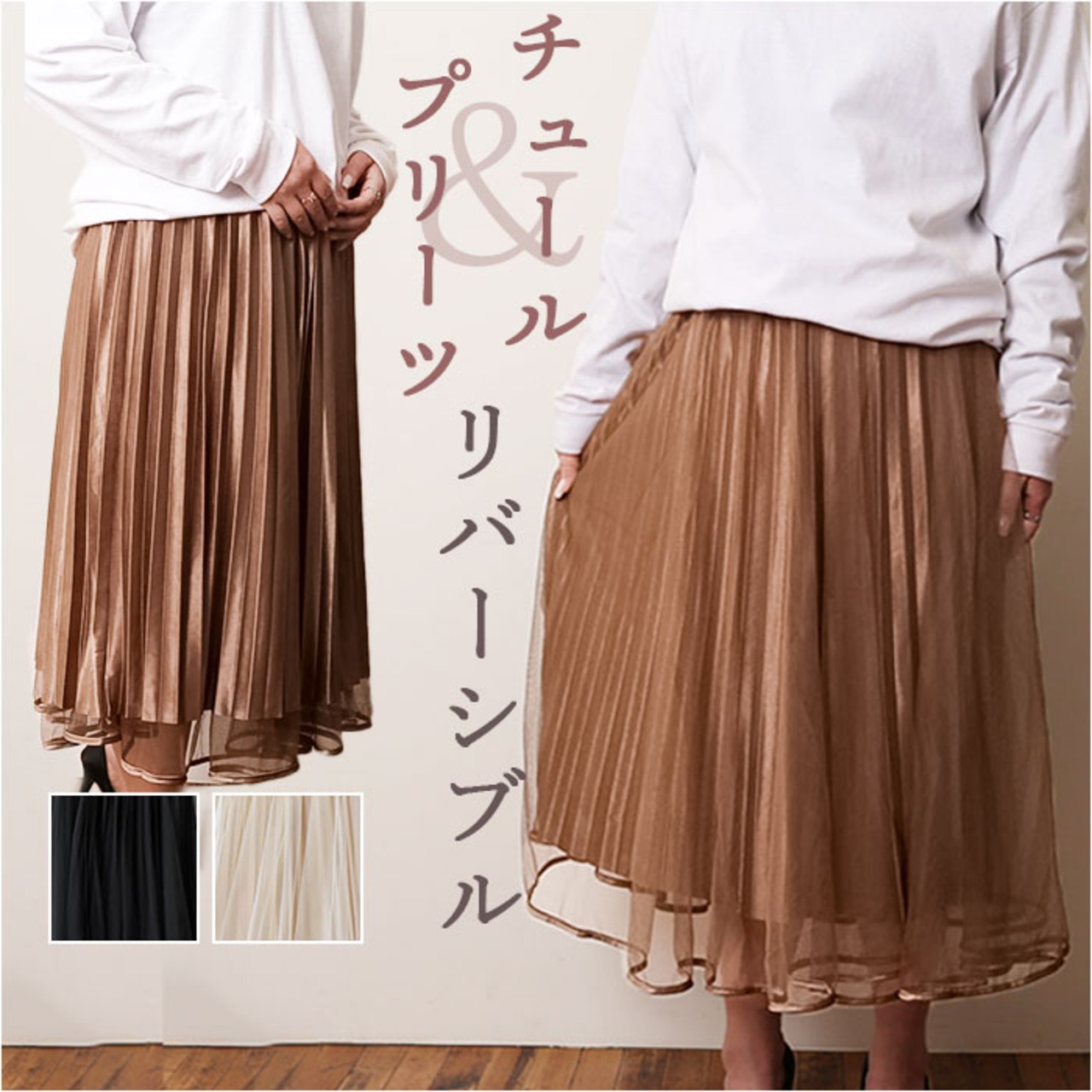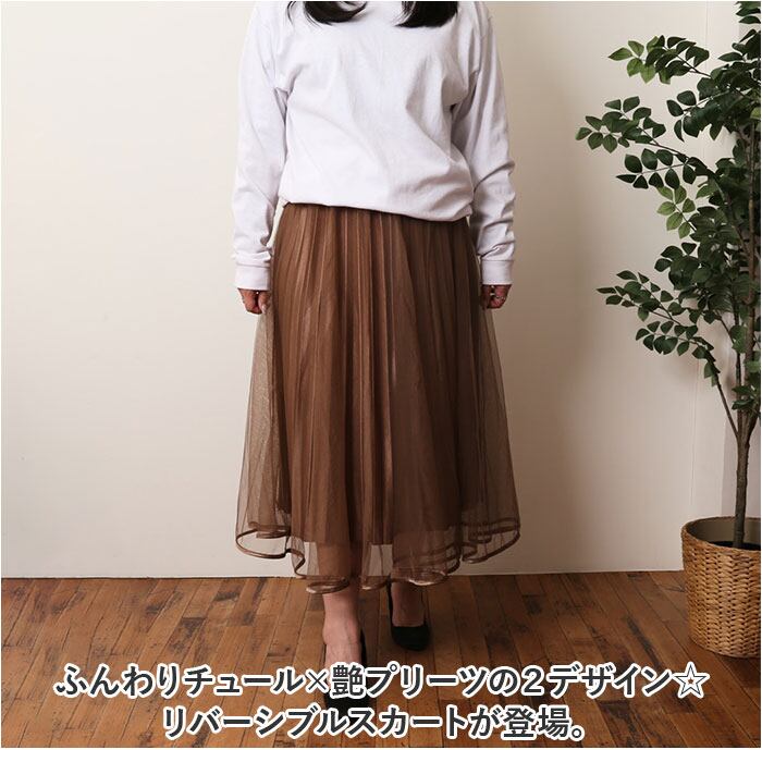 ・ふんわりチュール×艶プリーツの2デザイン☆リバーシブルスカートが登場。