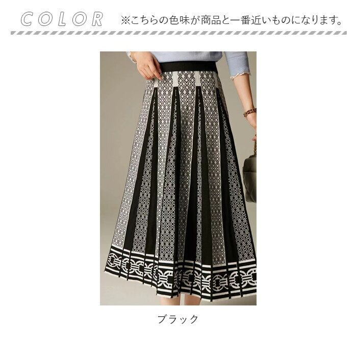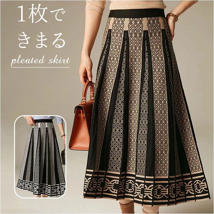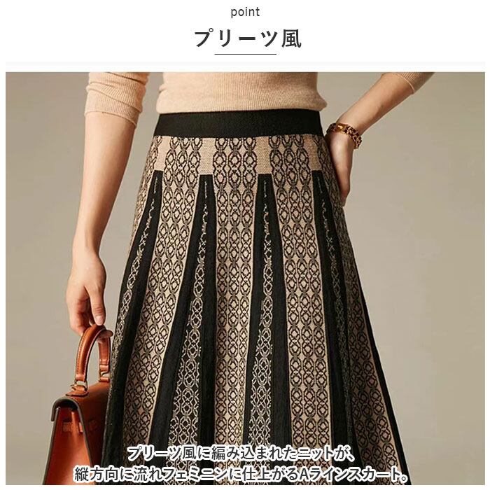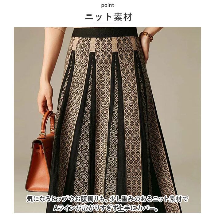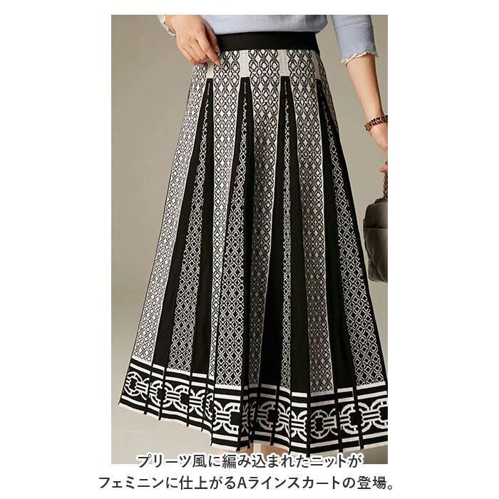 ロングスカート 柄 スカート 通販 ニットスカート ニット ミモレ ミモレ丈 ロング Aライン きれいめ プリーツ おしゃれ 総柄 エレガント 上品 レディース 春 秋 冬