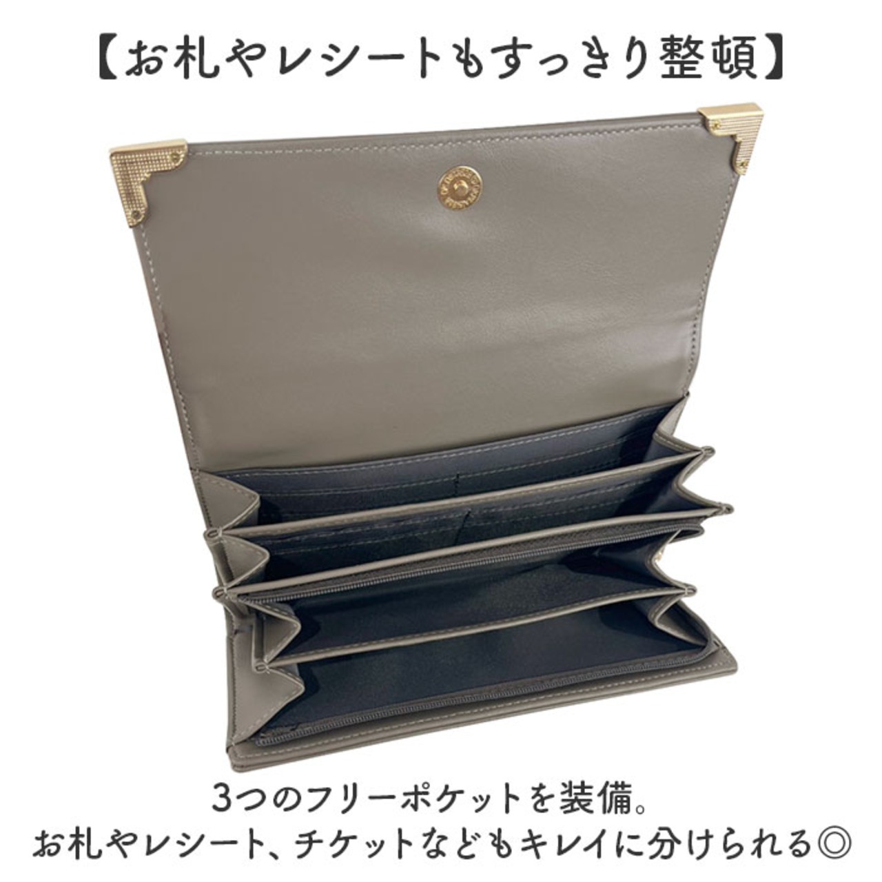 ・3つのフリーポケットを装備。お札やレシート、チケットなどもキレイに分けられる◎