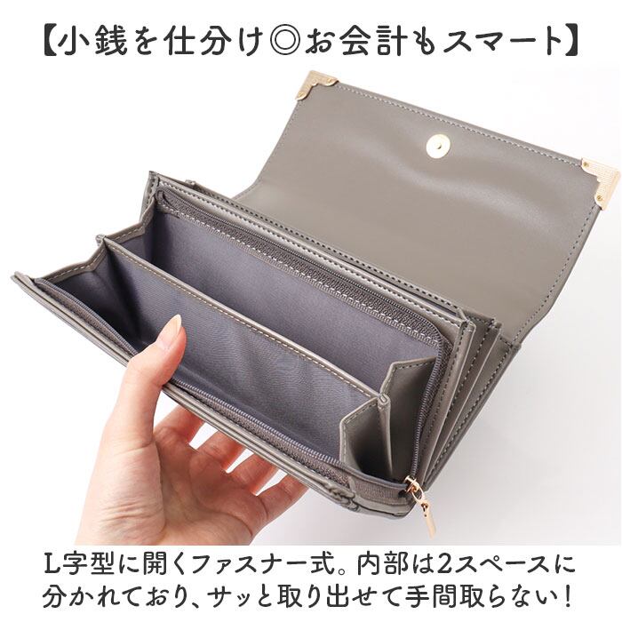 ・内側:L字ファスナー式小銭入れ×1(内側2スペース仕様)、フリーポケット×3、カードポケット×12