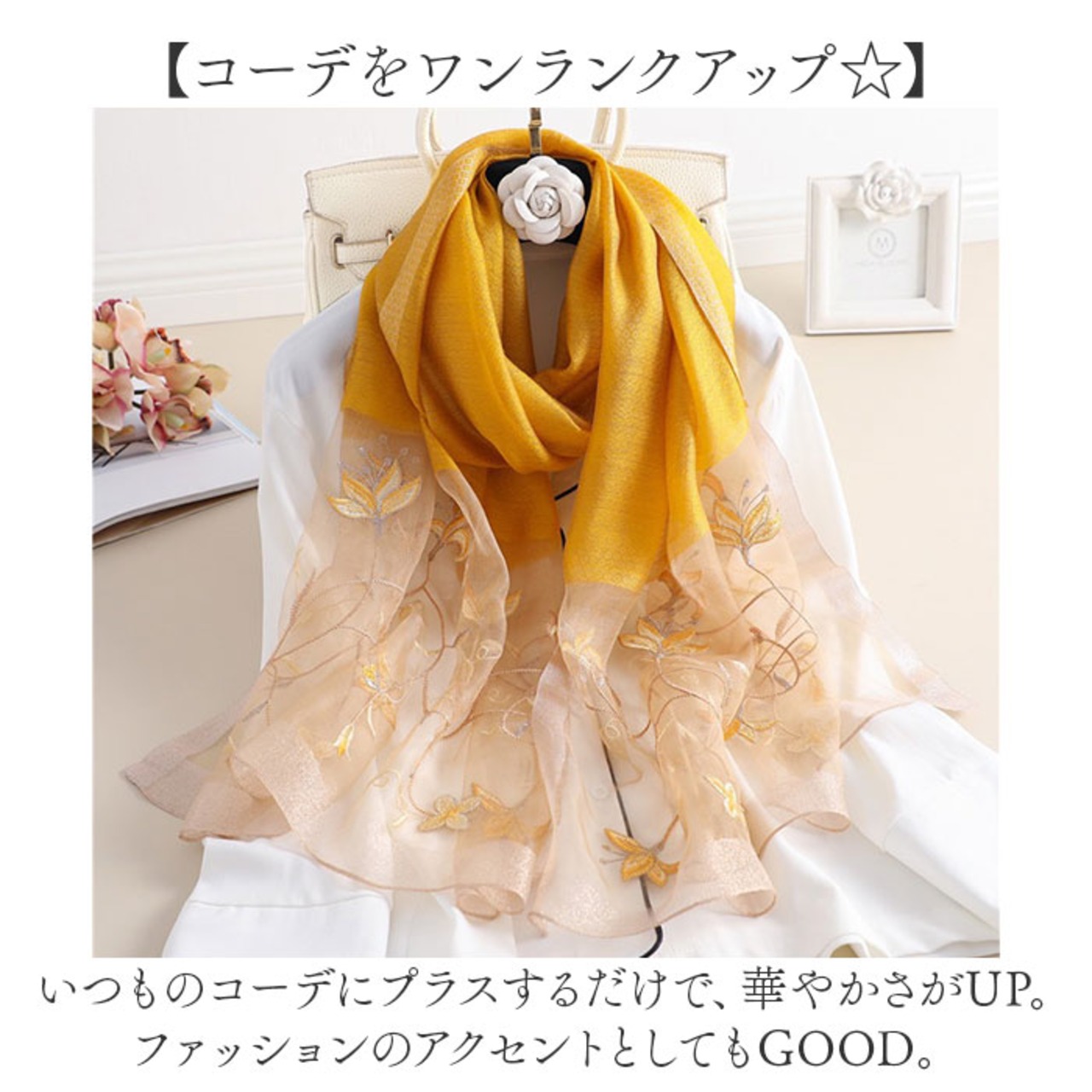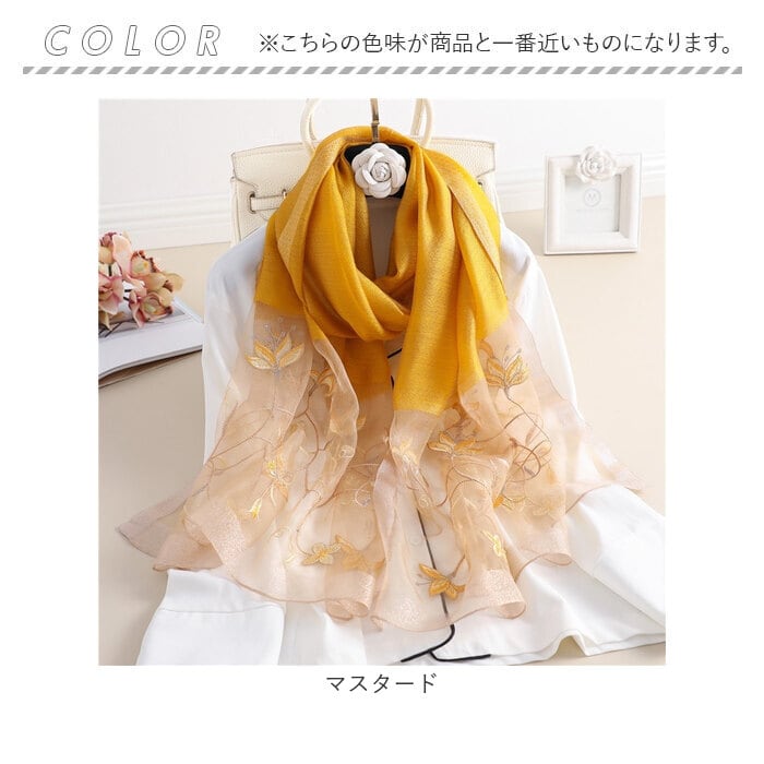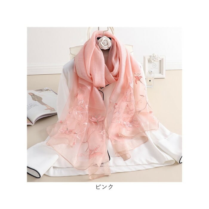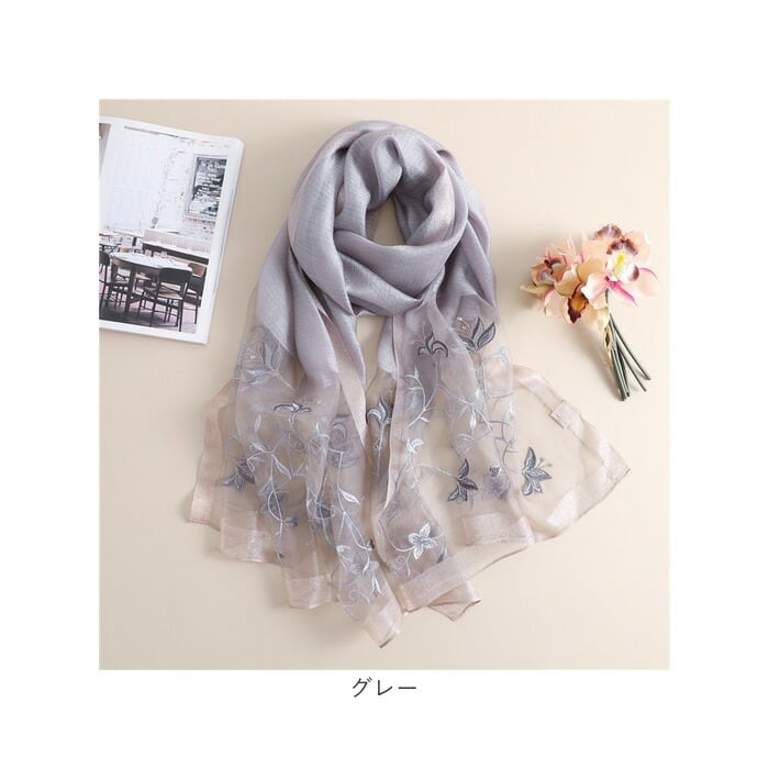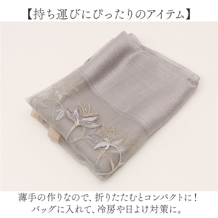 ・冷房対策や日よけ、コーデのアクセントで大活躍。大判ストール 花柄刺繍が登場。