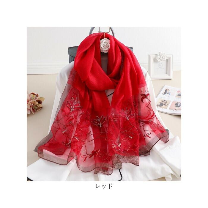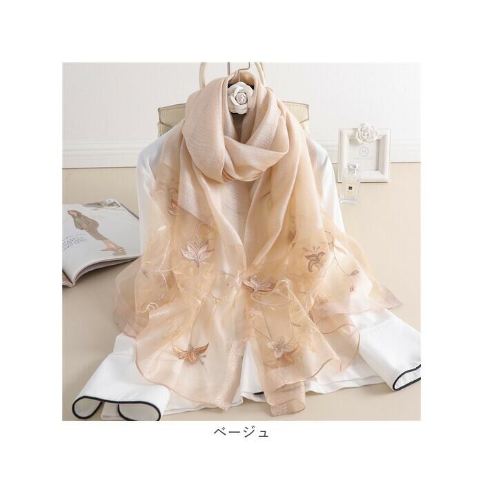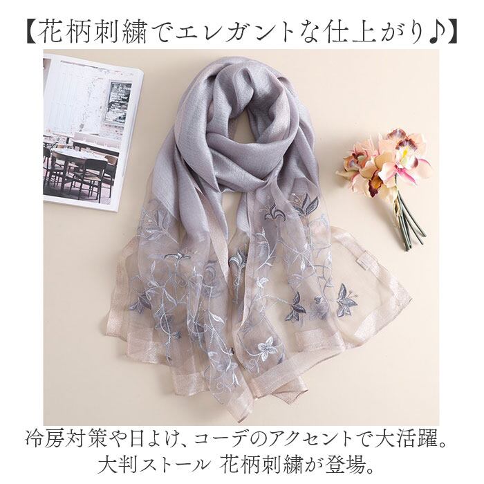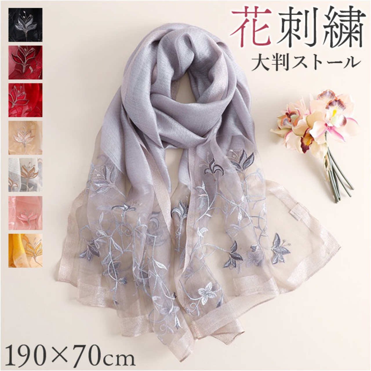 ストール 大判 刺? レディース 通販 ショール 大判ストール スカーフ ウール シルク 花 フラワー 花柄 冷房対策 エレガント 上品 おしゃれ オシャレ ギフト 贈り物 花柄刺繍 春 夏 春夏 秋 冬 秋冬 結婚式 パーティー