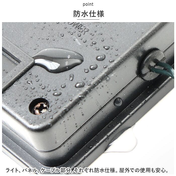 ・ライト、パネル、ケーブル部分、それぞれ防水仕様。屋外での使用も安心。