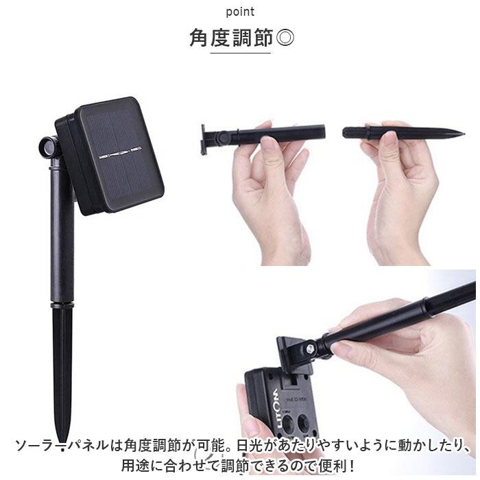 ・ソーラーパネルは角度調節が可能。日光があたりやすいように動かしたり、用途に合わせて調節できるので便利!