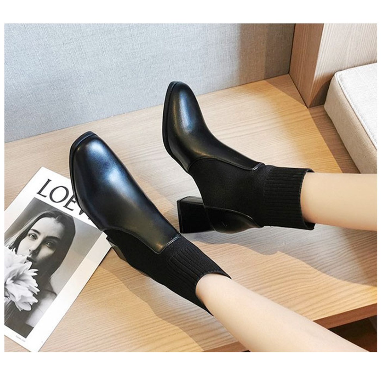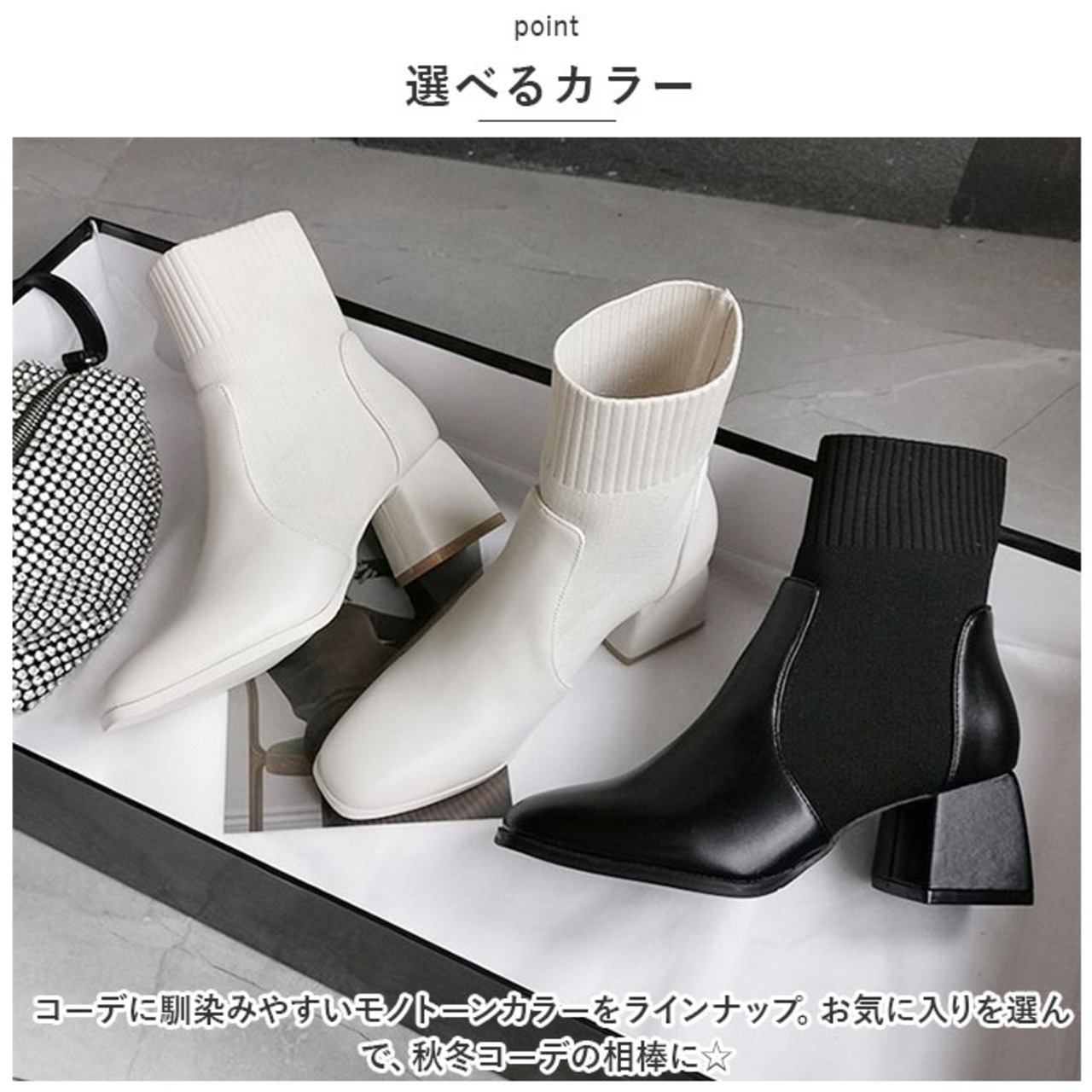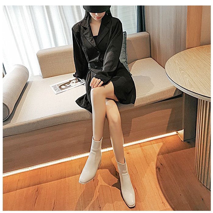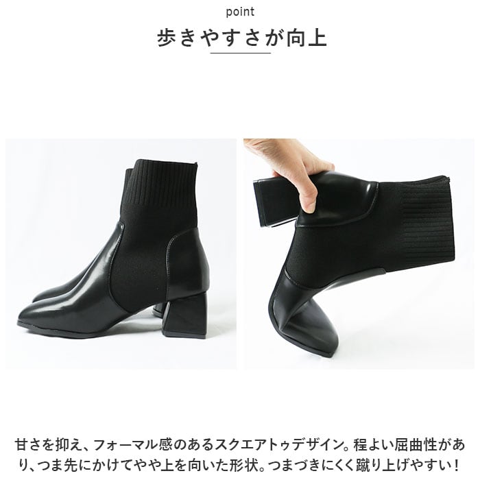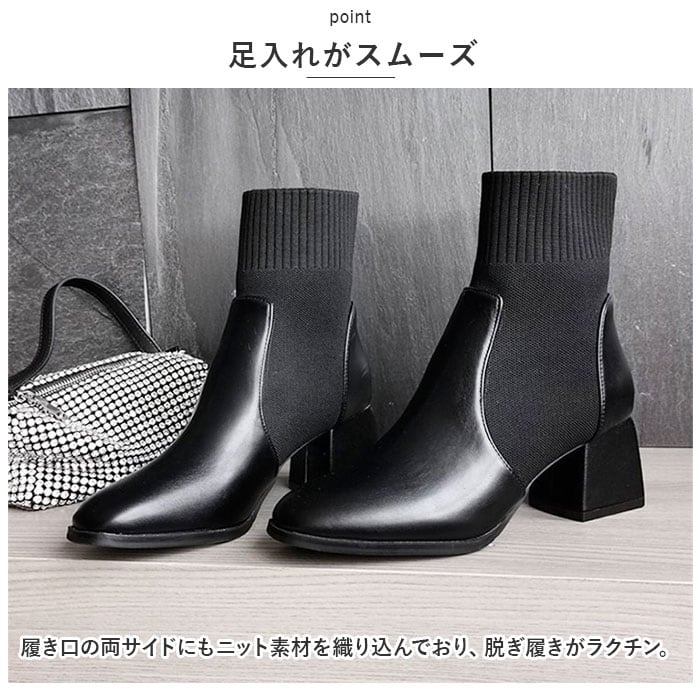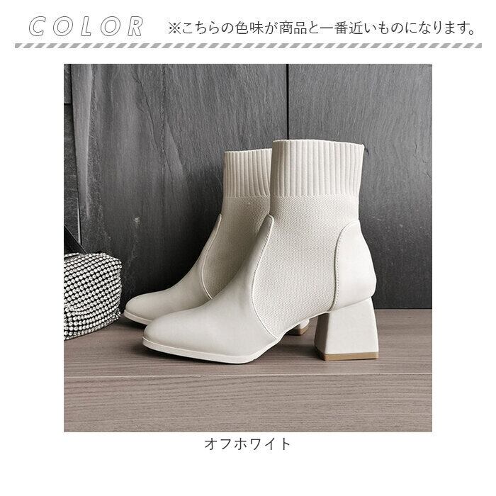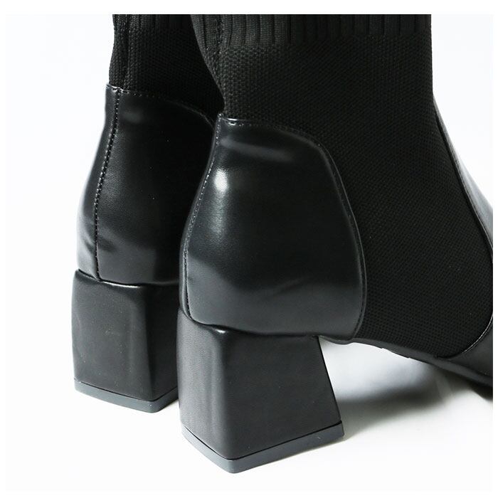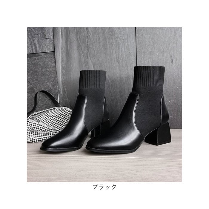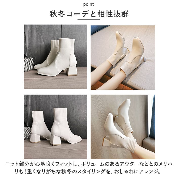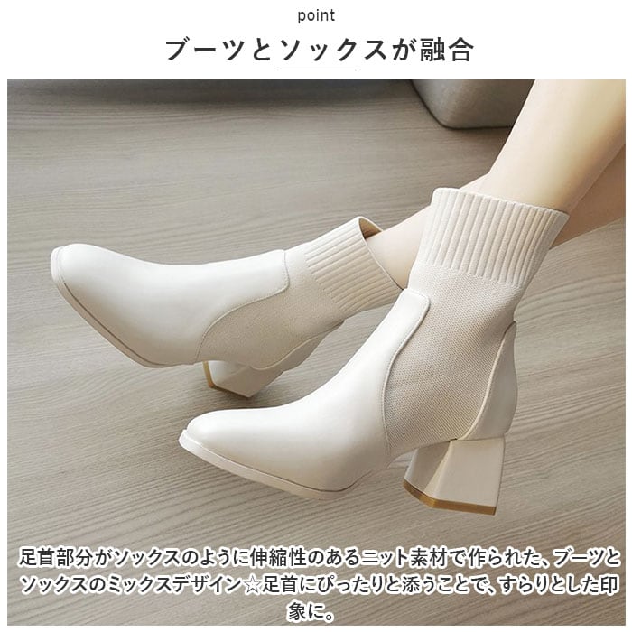 ・足首部分がソックスのように伸縮性のあるニット素材で作られた、ブーツとソックスのミックスデザイン☆足首にぴったりと添うことで、すらりとした印象に。