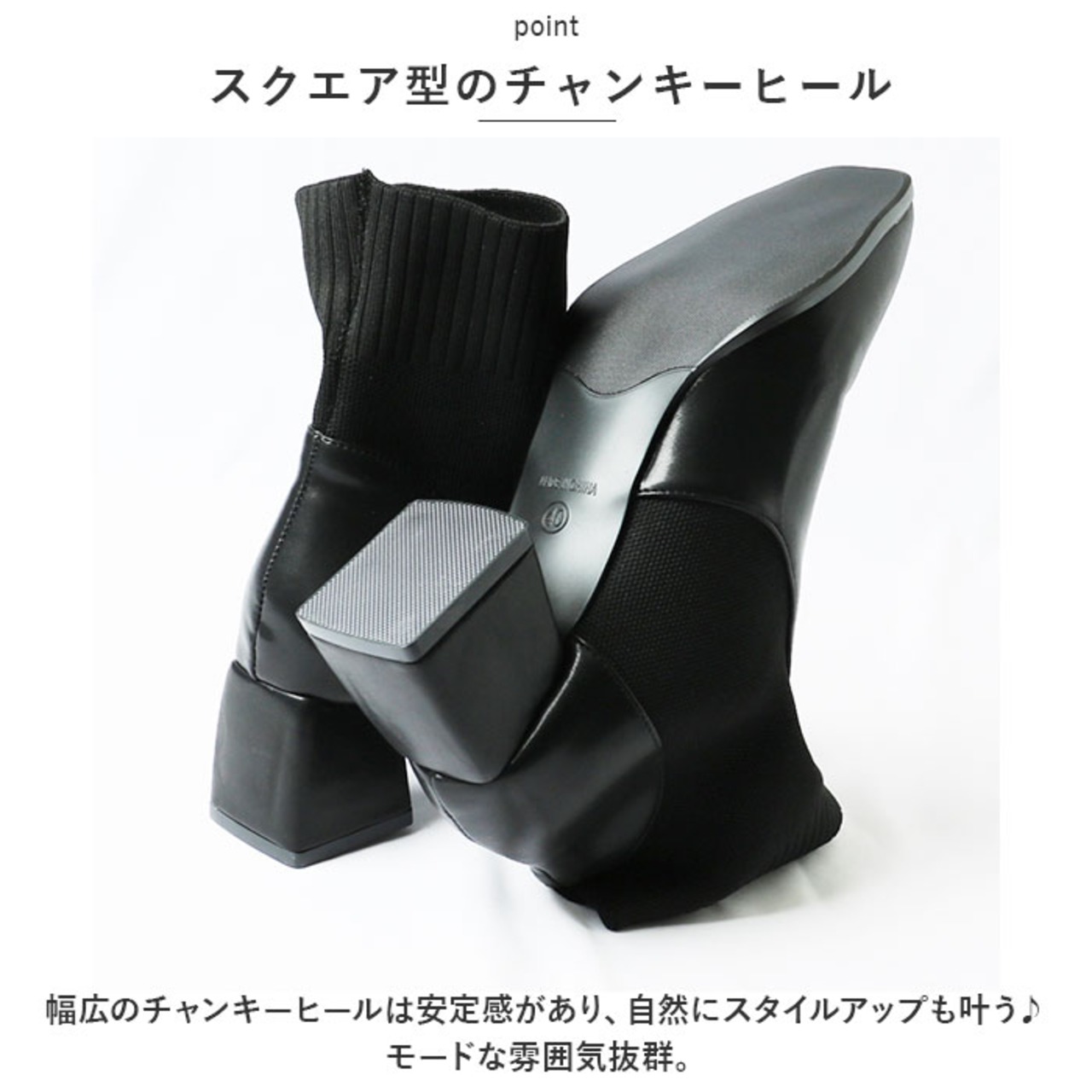・幅広のチャンキーヒールは安定感があり、自然にスタイルアップも叶う♪モードな雰囲気抜群。