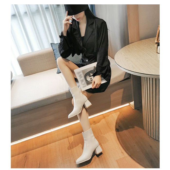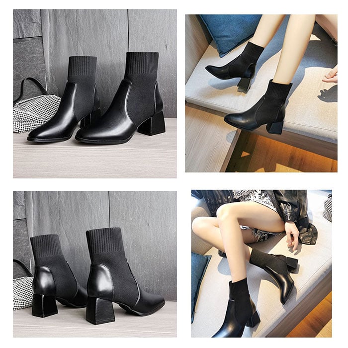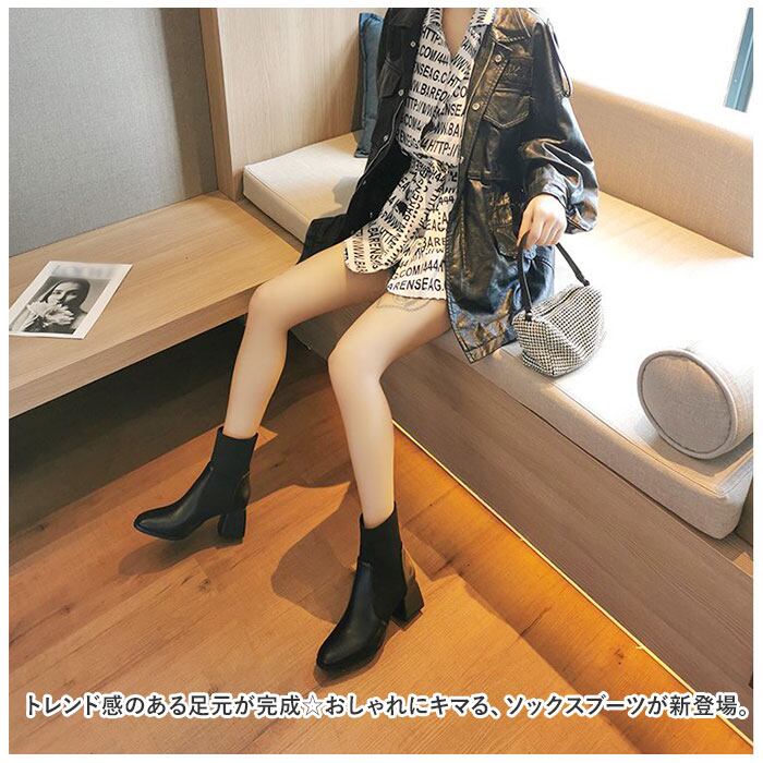 ソックスブーツ レディース 歩きやすい 通販 ストレッチブーツ ショートブーツ 靴下ブーツ ブーツ シューズ PUブーツ PU 厚底 チャンキーヒール ヒール ポインテッドトゥ 疲れにくい 履きやすい 安定感 シンプル 秋 冬 デザイン おしゃれ ストレッチ