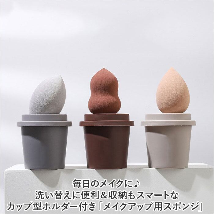 ・毎日のメイクに♪洗い替えに便利&収納もスマートなカップ型ホルダー付き「メイクアップ用スポンジ」。