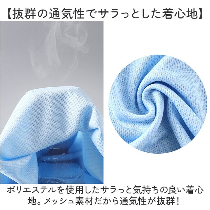 ・ポリエステルを使用したサラっと気持ちの良い着心地。メッシュ素材だから通気性が抜群!