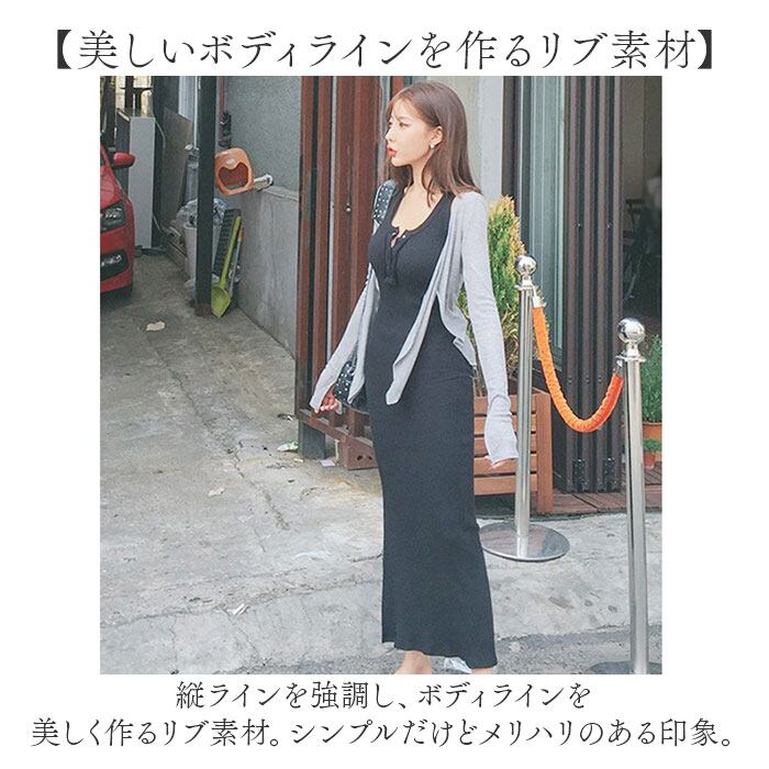 ・縦ラインを強調し、ボディラインを美しく作るリブ素材。シンプルだけどメリハリのある印象。