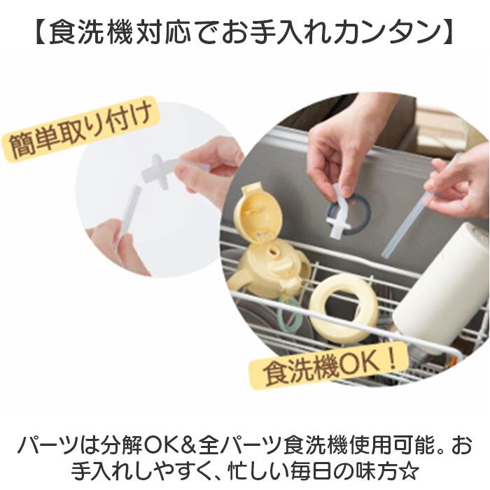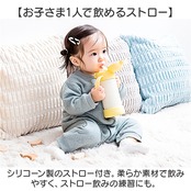 ・シリコーン製のストロー付き。柔らか素材で飲みやすく、ストロー飲みの練習にも。