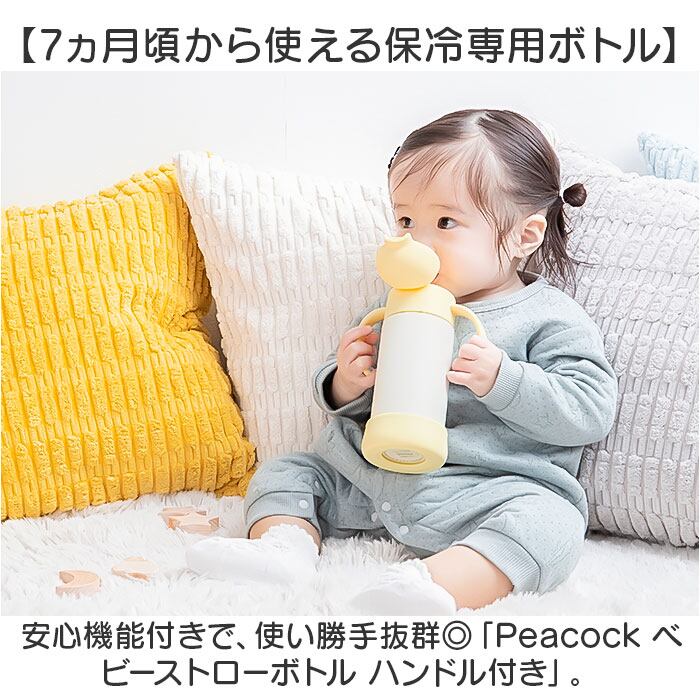 ・安心機能付きで、使い勝手抜群◎「Peacock ベビーストローボトル ハンドル付き」。